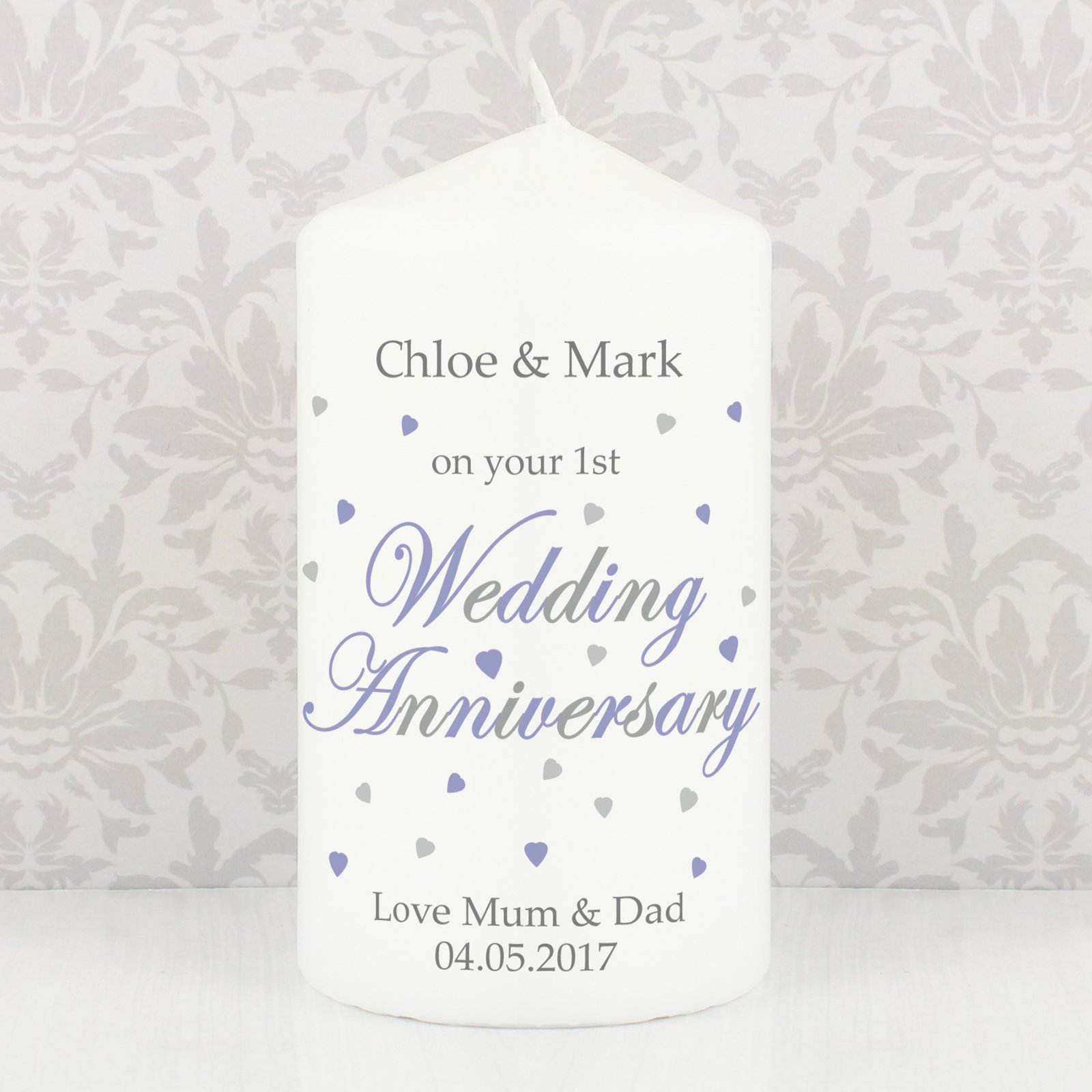 Celebrate lasting love with this elegant Personalised Wedding Anniversary Pillar Candle — a heartfelt keepsake perfect for marking a special milestone. Beautifully designed and customisable, this candle makes a thoughtful gift for couples celebrating years of cherished memories together.