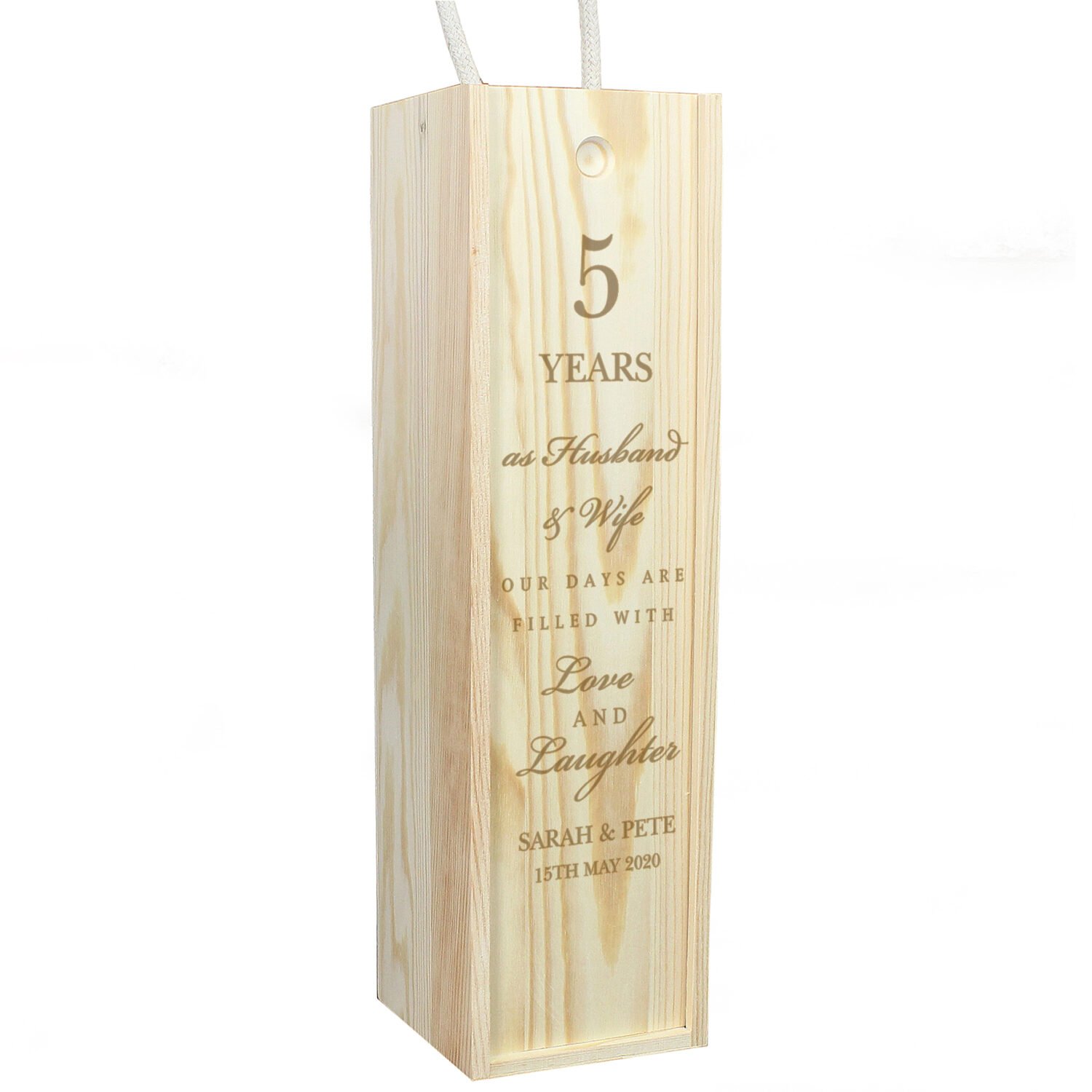 Personalised ‘Our Days Are Filled With Love & Laughter’ Anniversary Wooden Wine Bottle Gift Box