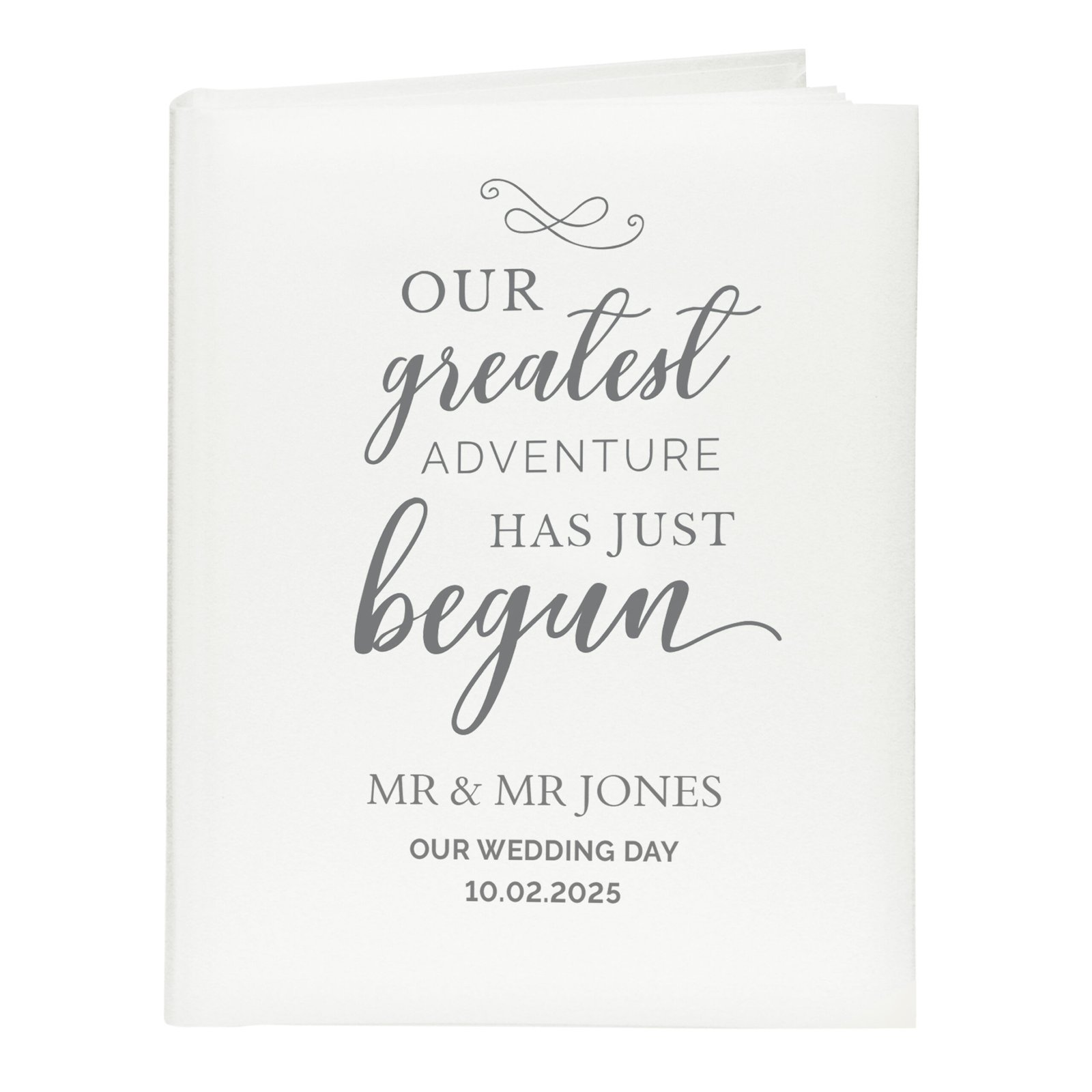 Featuring the romantic fixed phrase ‘Our Greatest Adventure Has Just Begun’ on the cover, this album captures the spirit of love, new beginnings, and shared dreams. Add your own personalised message to make it a unique and meaningful gift.