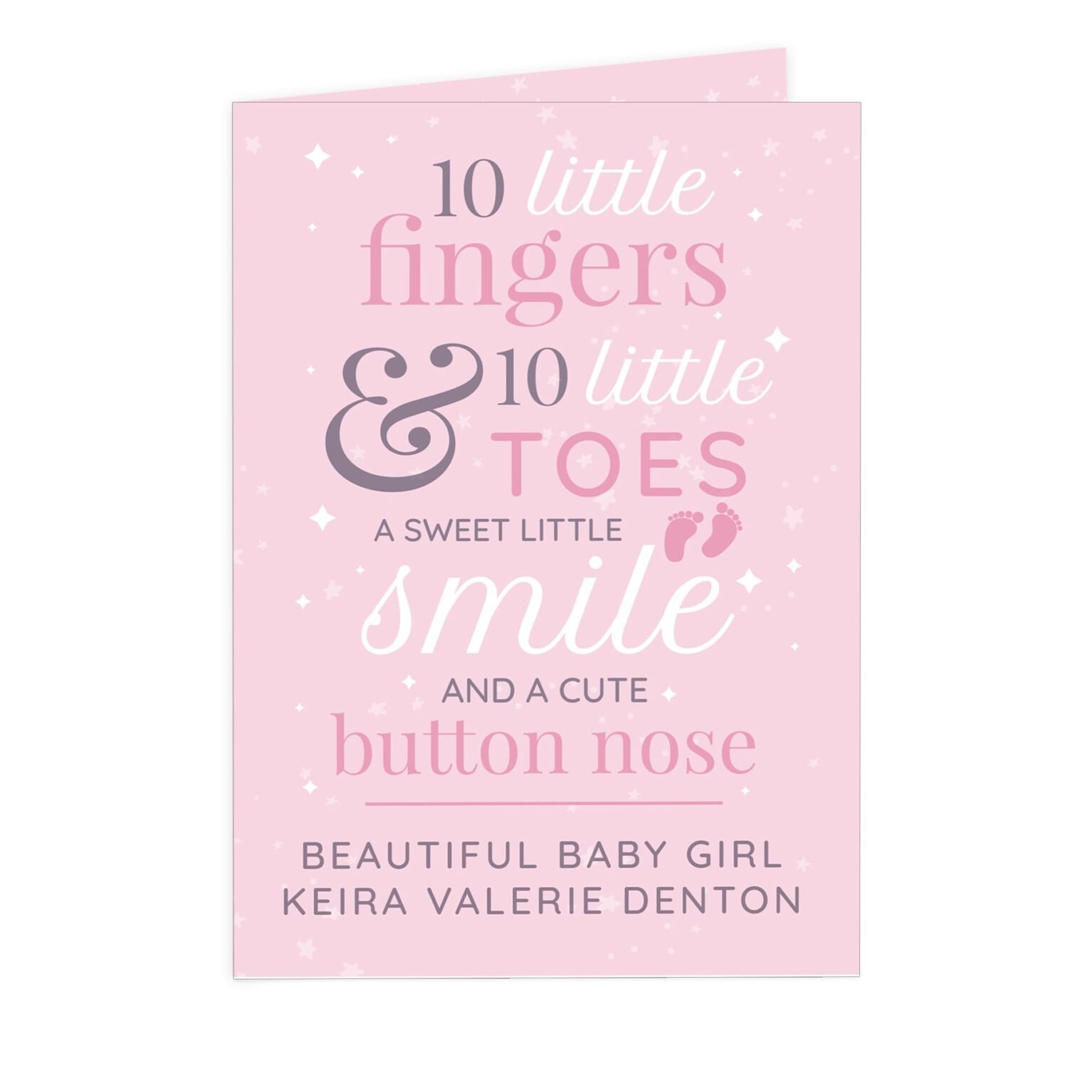 Personalised Pink ’10 Little Fingers & 10 Little Toes’ Baby Card