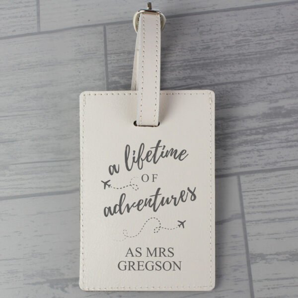 Personalised ‘A Lifetime of Adventures’ Cream Leather Luggage Tag