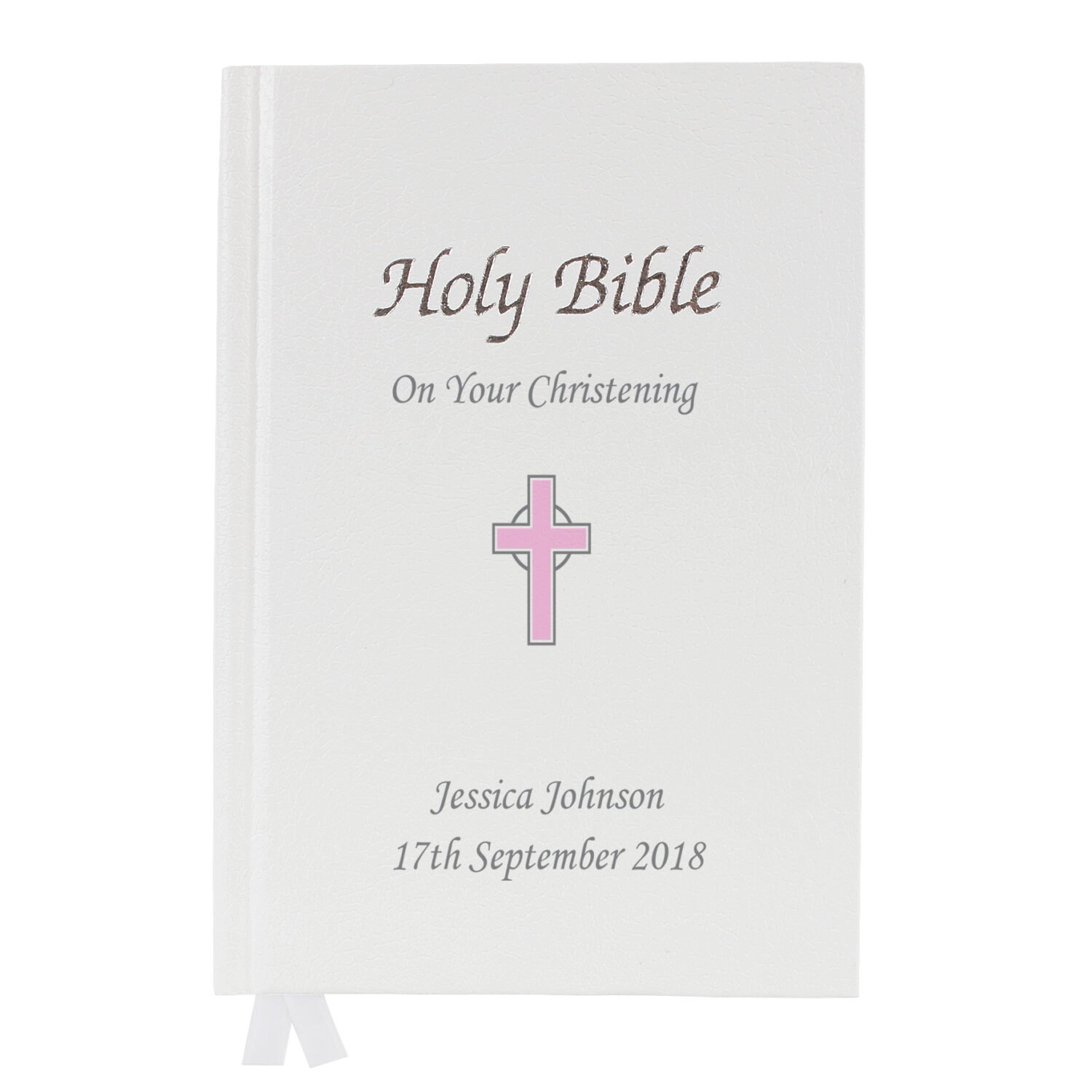 Personalised Pink Cross Motif Leatherette Holy Bible