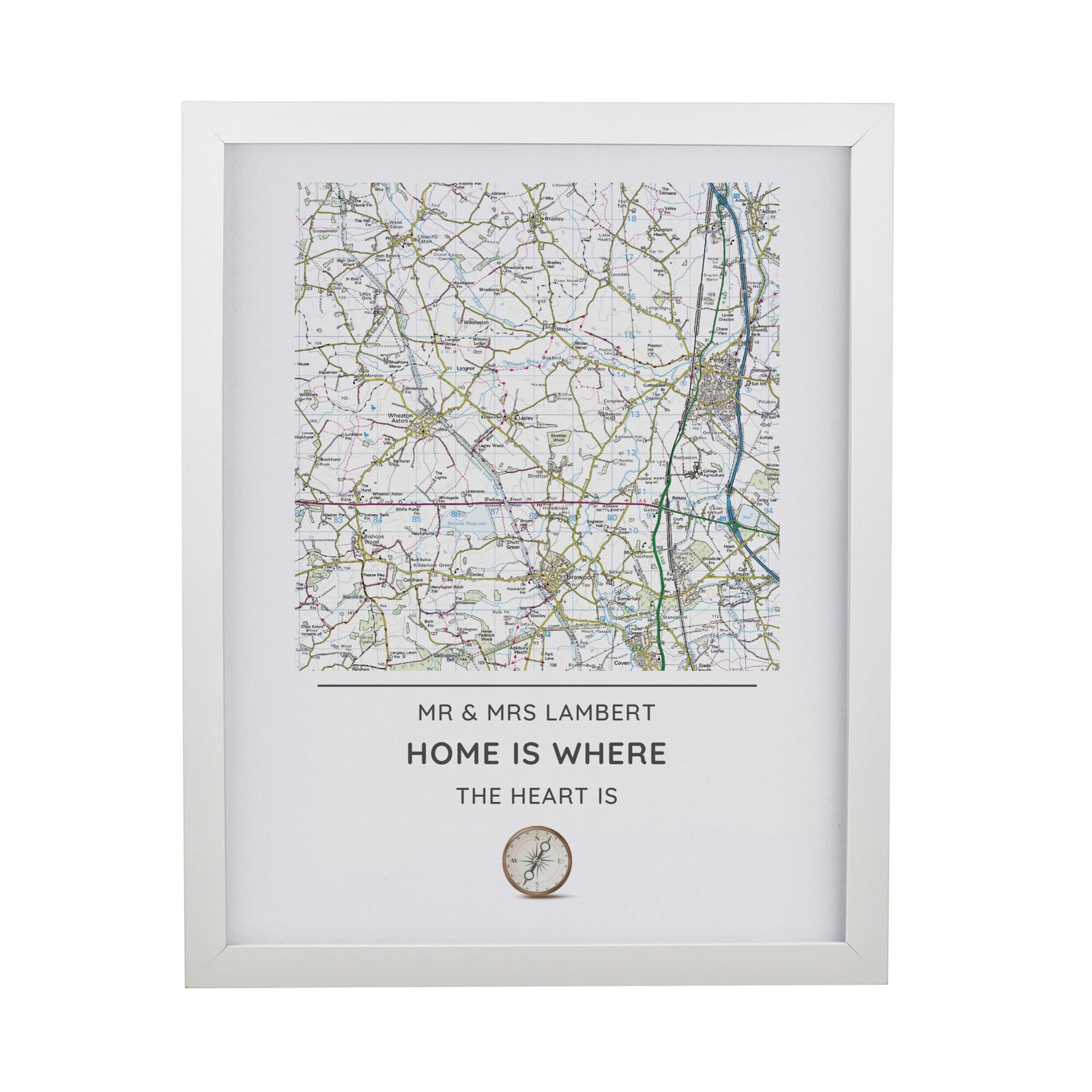 Personalised Present Day Map Design Compass Motif White Framed Poster