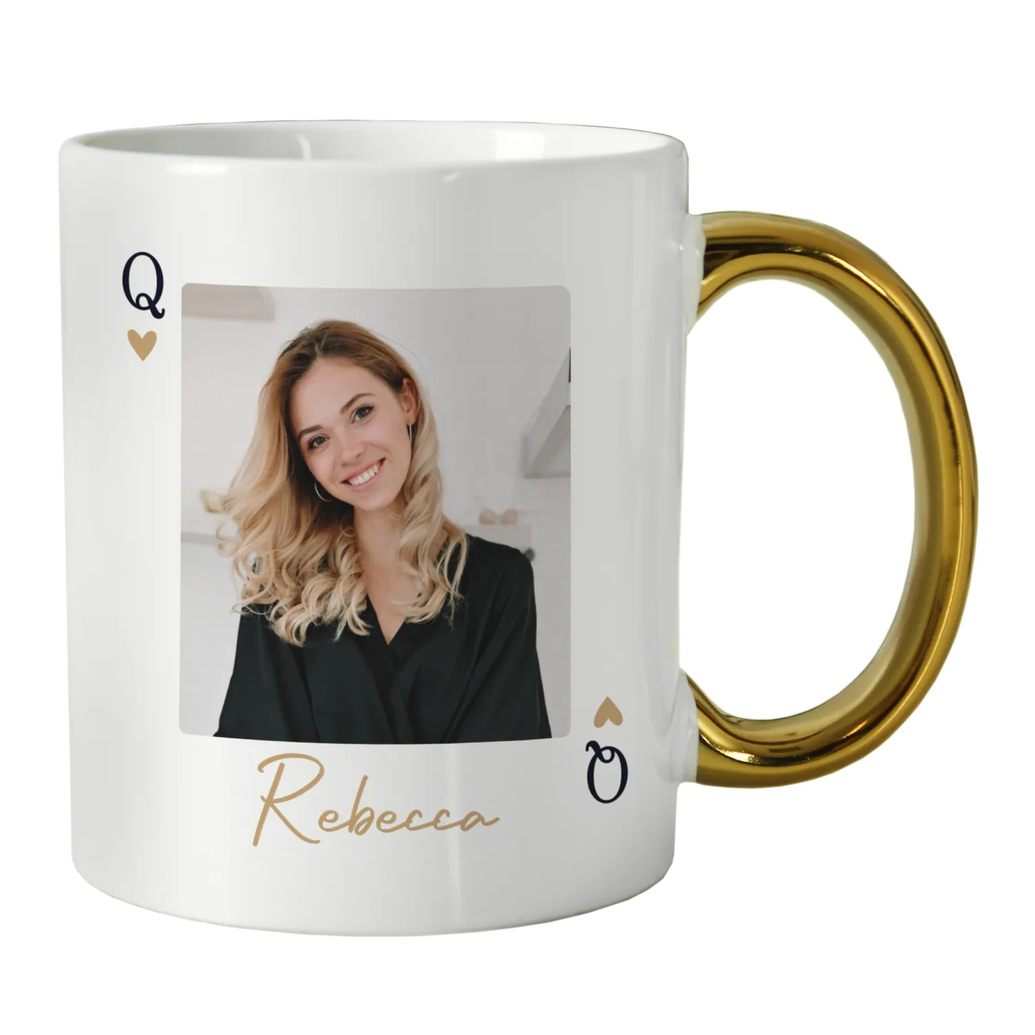 Personalised Queen of Hearts Photo Upload Gold Handled Ceramic Mug