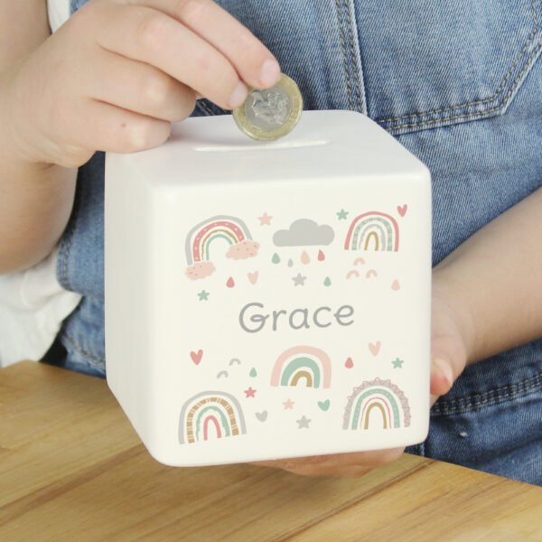 Personalised Tiny Tatty Teddy Woodland Animals Design Ceramic Square Money Box