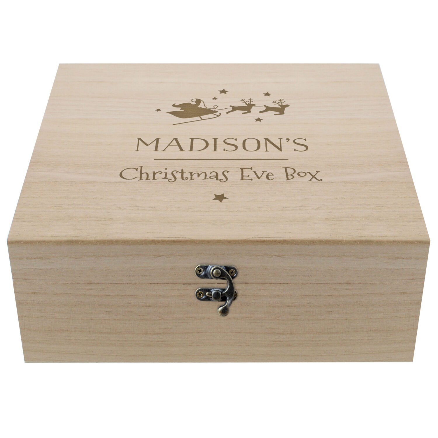Personalised Santa & Reindeer Motif Large Wooden Christmas Eve Box