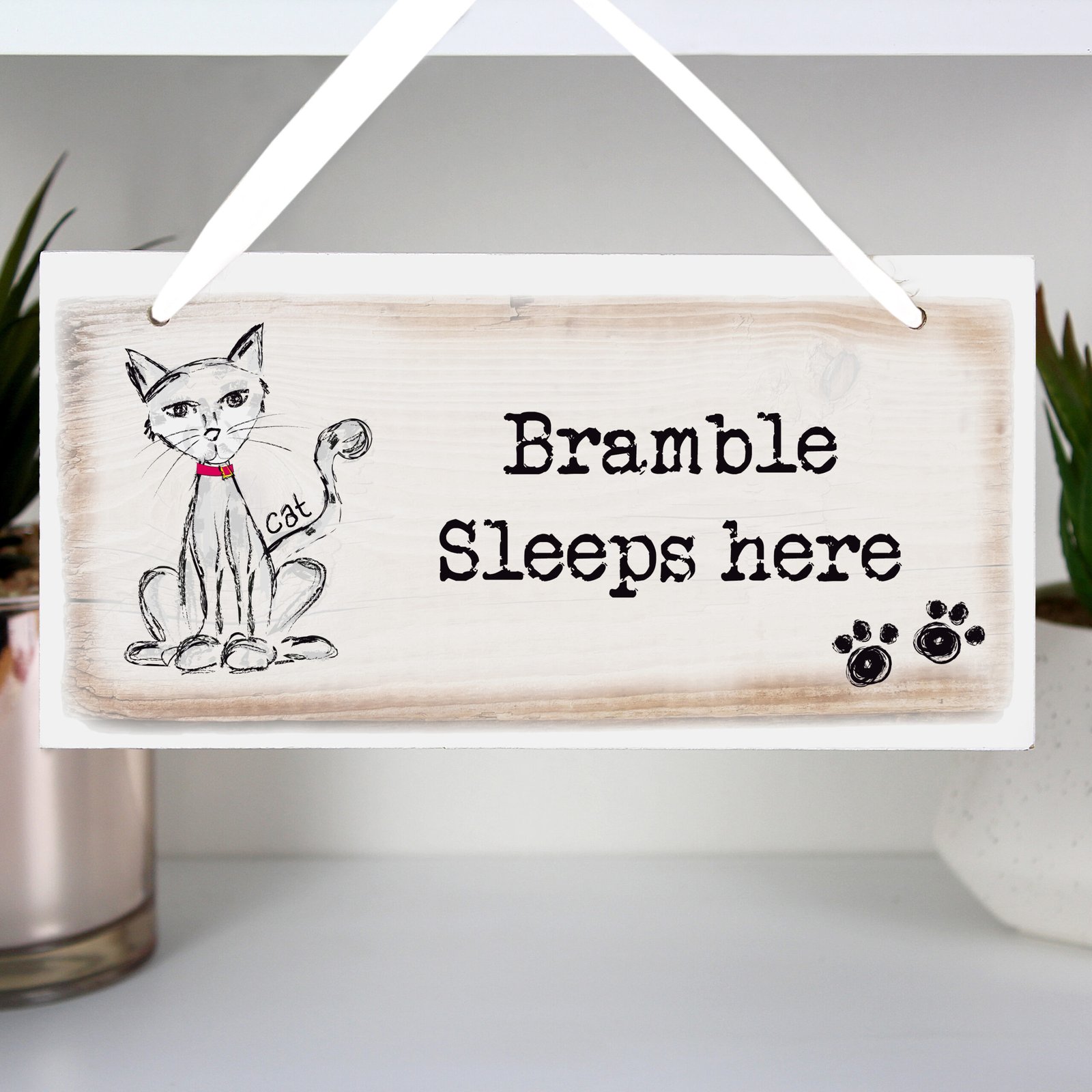 Personalised Scribble Cat Design Hanging Wooden Sign