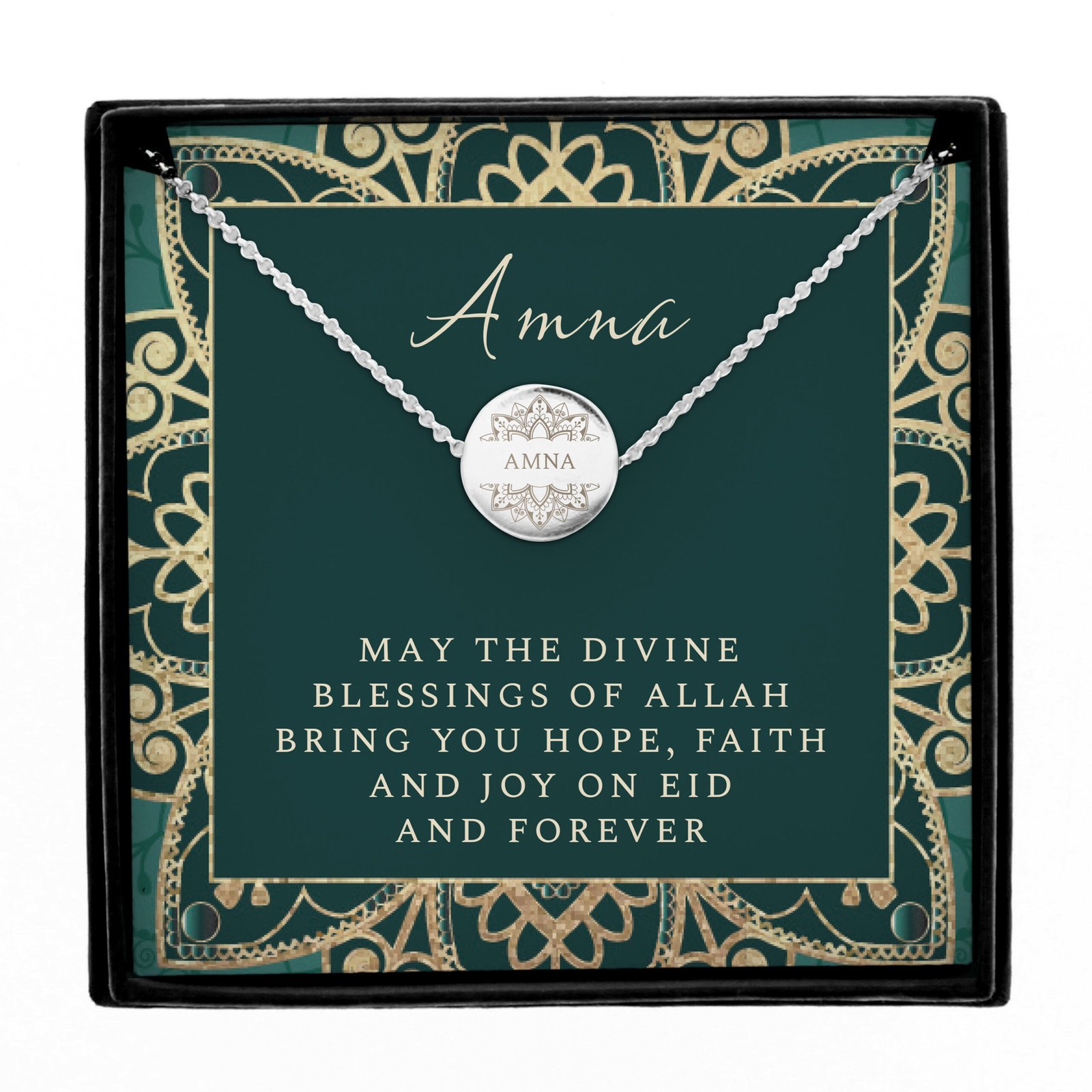 Personalised Sentiment Eid & Ramadan Silver Tone Disc Necklace & Gift Box