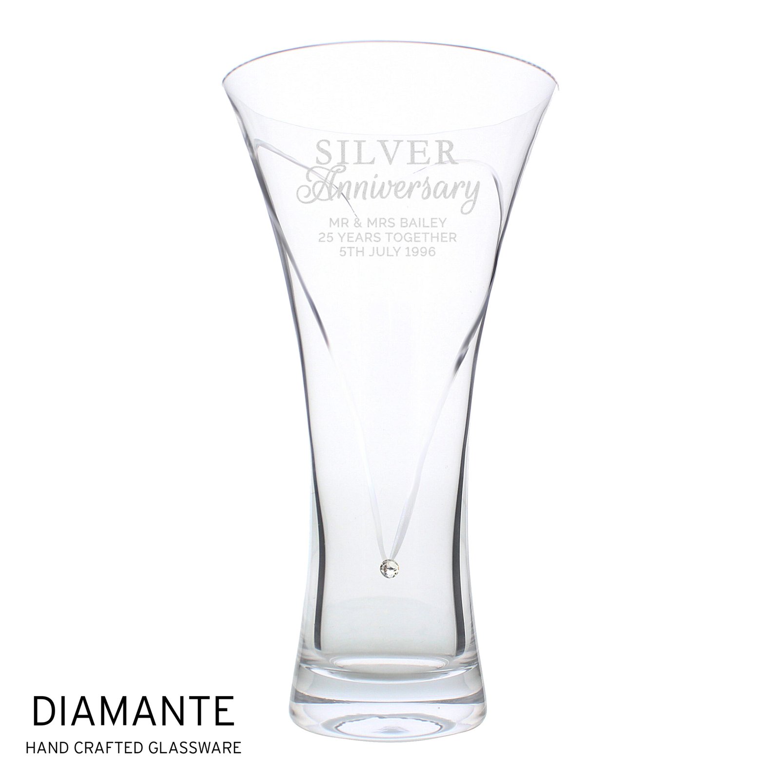 Personalised ‘Silver Anniversary’ Large Hand Cut Diamante Heart Glass Vase