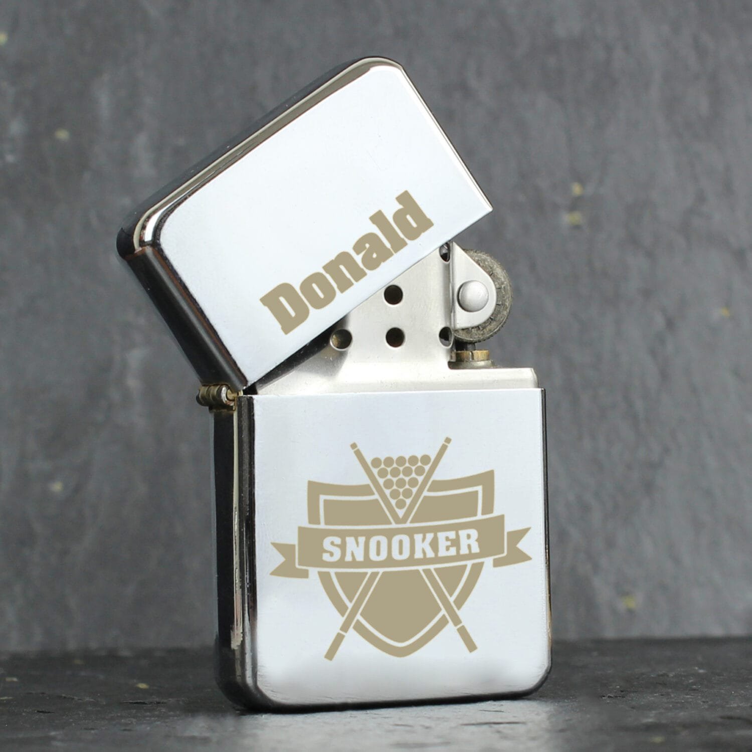 Cue the perfect gift for any snooker enthusiast with this stylish Personalised Snooker Design Chrome Plated Lighter. Whether for display or everyday use, this sleek lighter combines sporty flair with a personalised touch to make a truly unique keepsake.