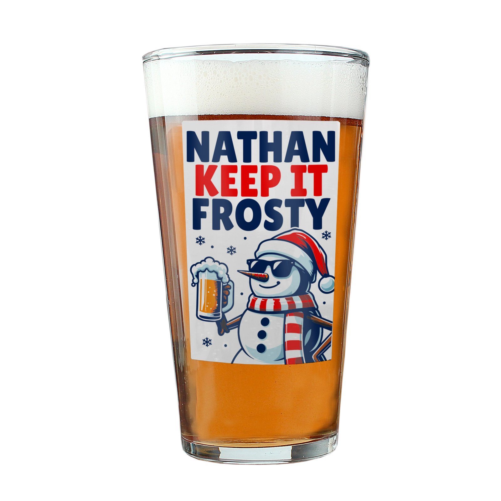 Personalised Snowman ‘Keep It Frosty’ Christmas Beer Glass