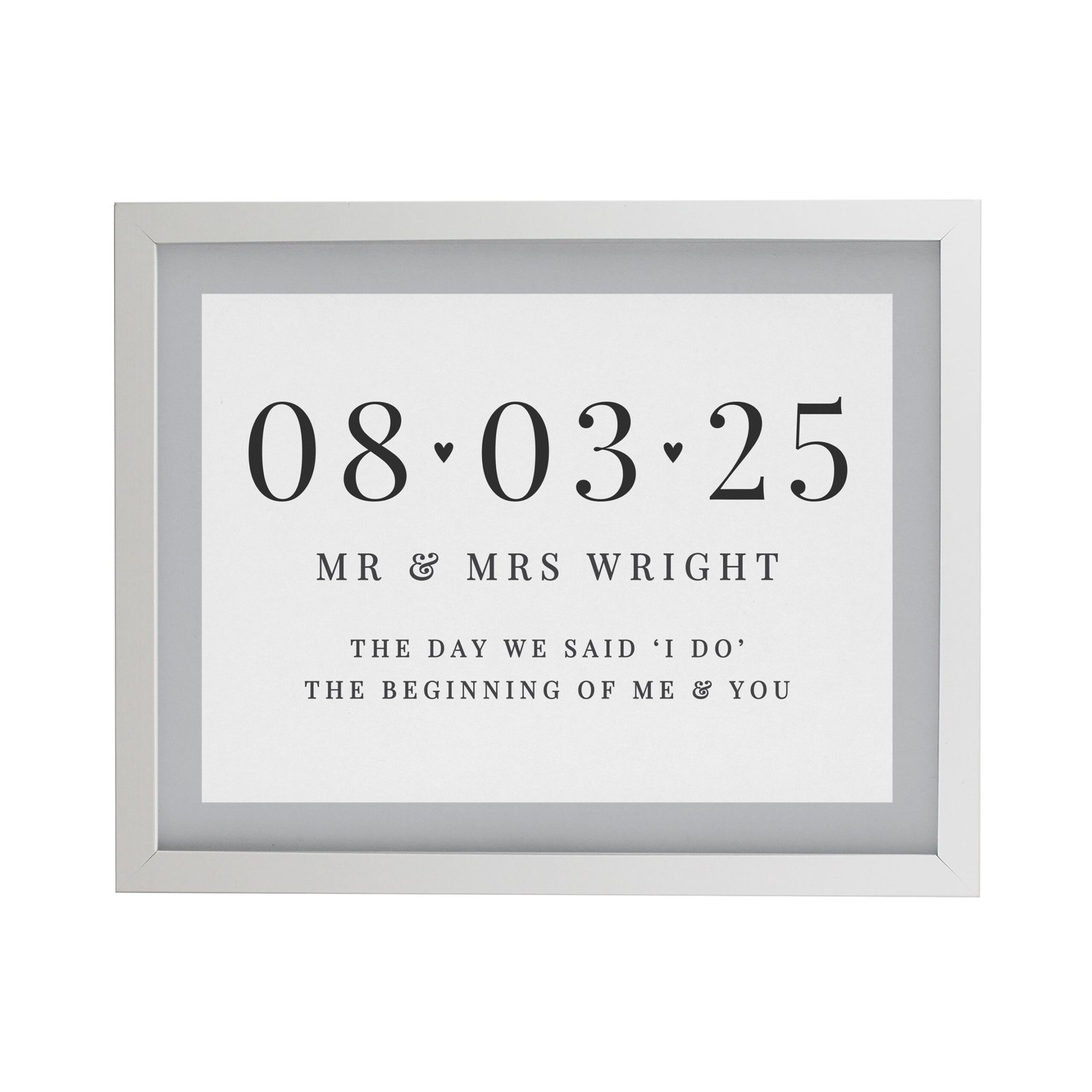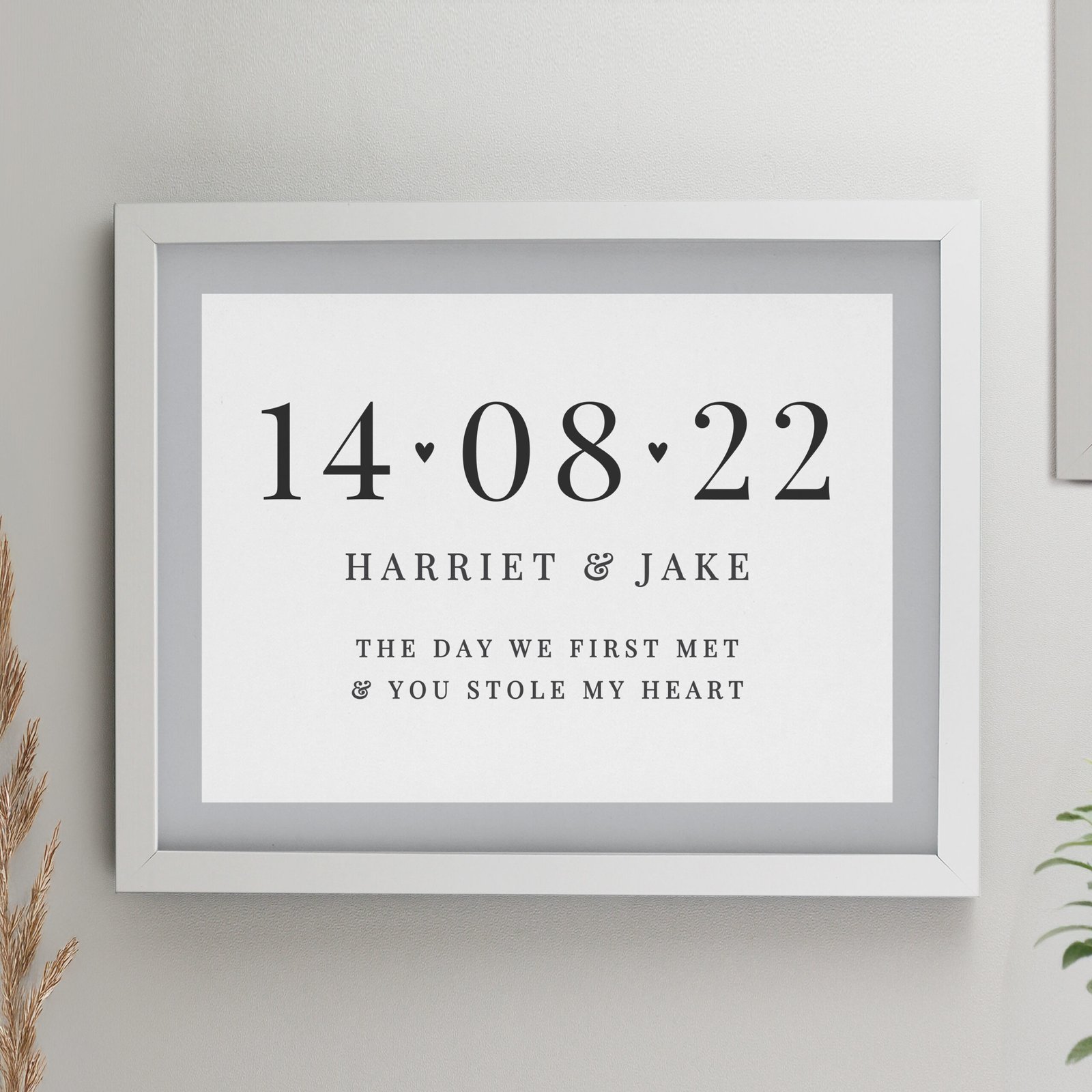 Mark a special occasion with this elegant and heartfelt personalised white framed print. Featuring a charming heart motif and your chosen date, this print makes a timeless keepsake for weddings, anniversaries, or Valentine’s Day.