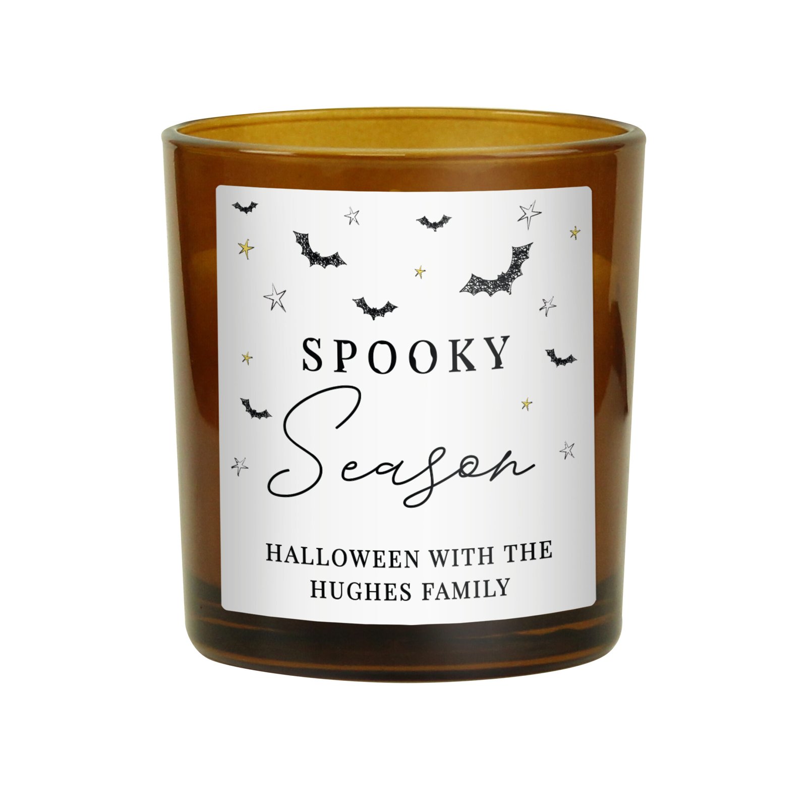 Personalised ‘Spooky Season’ Halloween Scented Amber Glass Jar Candle