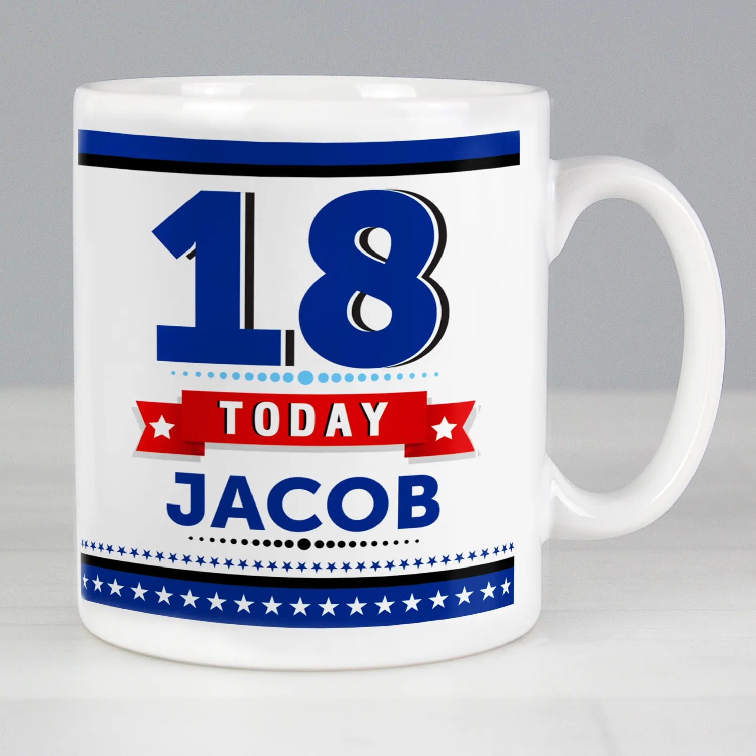 Personalised Star & Banner Design Birthday Ceramic Mug