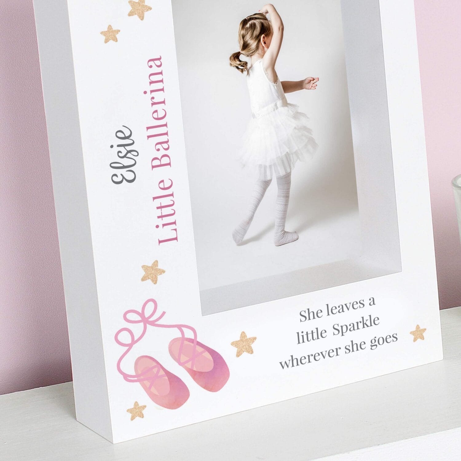 Capture precious memories in a frame as graceful as a pirouette with this charming Personalised Swan Lake Ballet Shoes Motif 5×7 Portrait Box Photo Frame. Featuring delicate ballet-themed artwork and thoughtful personalisation, it’s the perfect keepsake for young dancers and fans of the magical world of ballet.