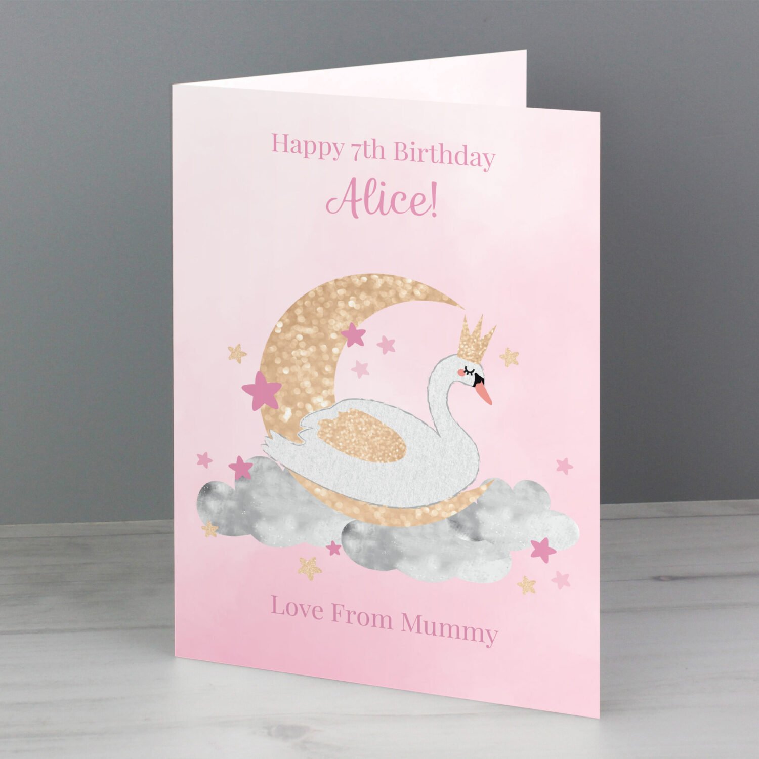 Graceful and elegant, this Personalised Swan Lake Design Card is a beautiful way to mark a meaningful occasion. Whether it’s for a birthday, dance recital, christening, or just a thoughtful note, this charming card can be customised with your own special message on both the front and inside.