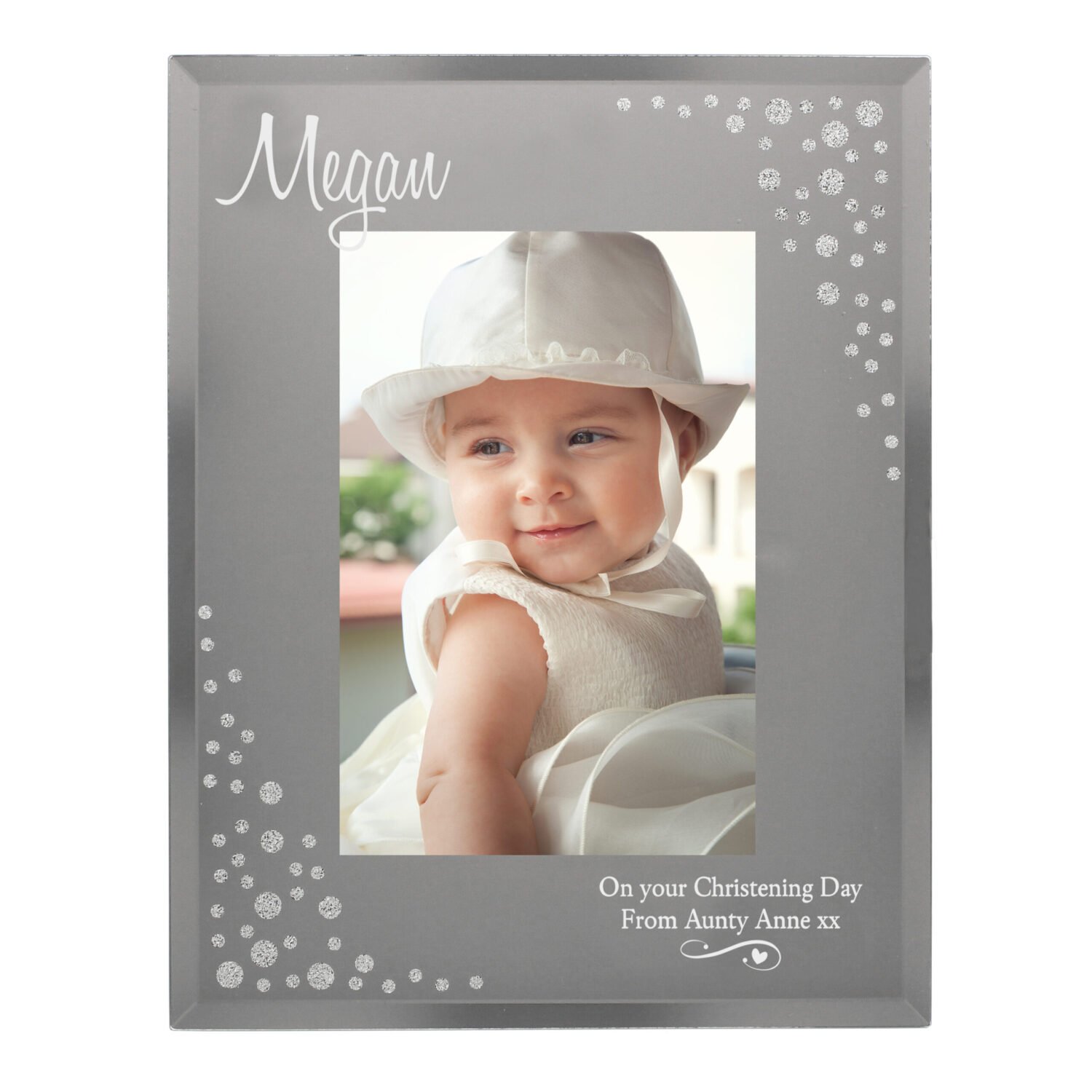 Add a touch of elegance and sparkle to your treasured memories with this Personalised Swirls & Hearts Diamante 4×6 Mirrored Glass Photo Frame. With its soft mirrored finish, delicate swirl and heart detailing, and dazzling diamante accents, this frame is the perfect way to showcase a favourite photograph in style.