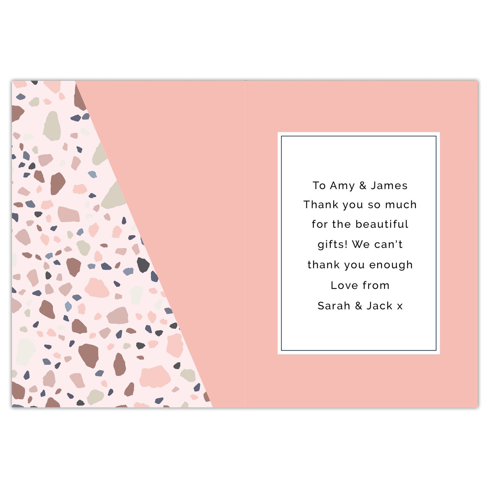 Show your appreciation in a stylish and meaningful way with this Personalised ‘Thank You’ Greeting Card. Featuring a chic terrazzo-inspired design and bold typography, this card is the perfect gesture to let someone know just how grateful you are.