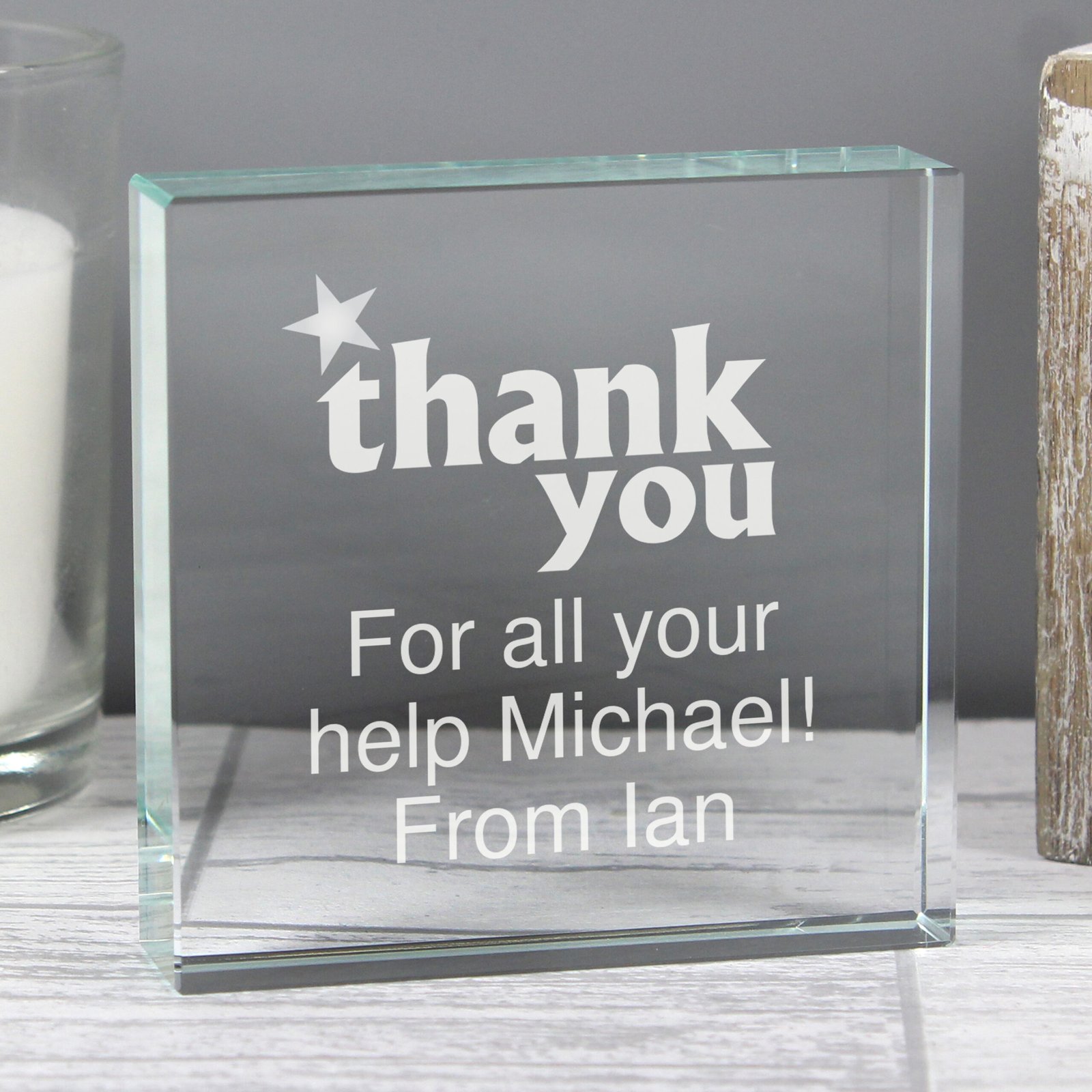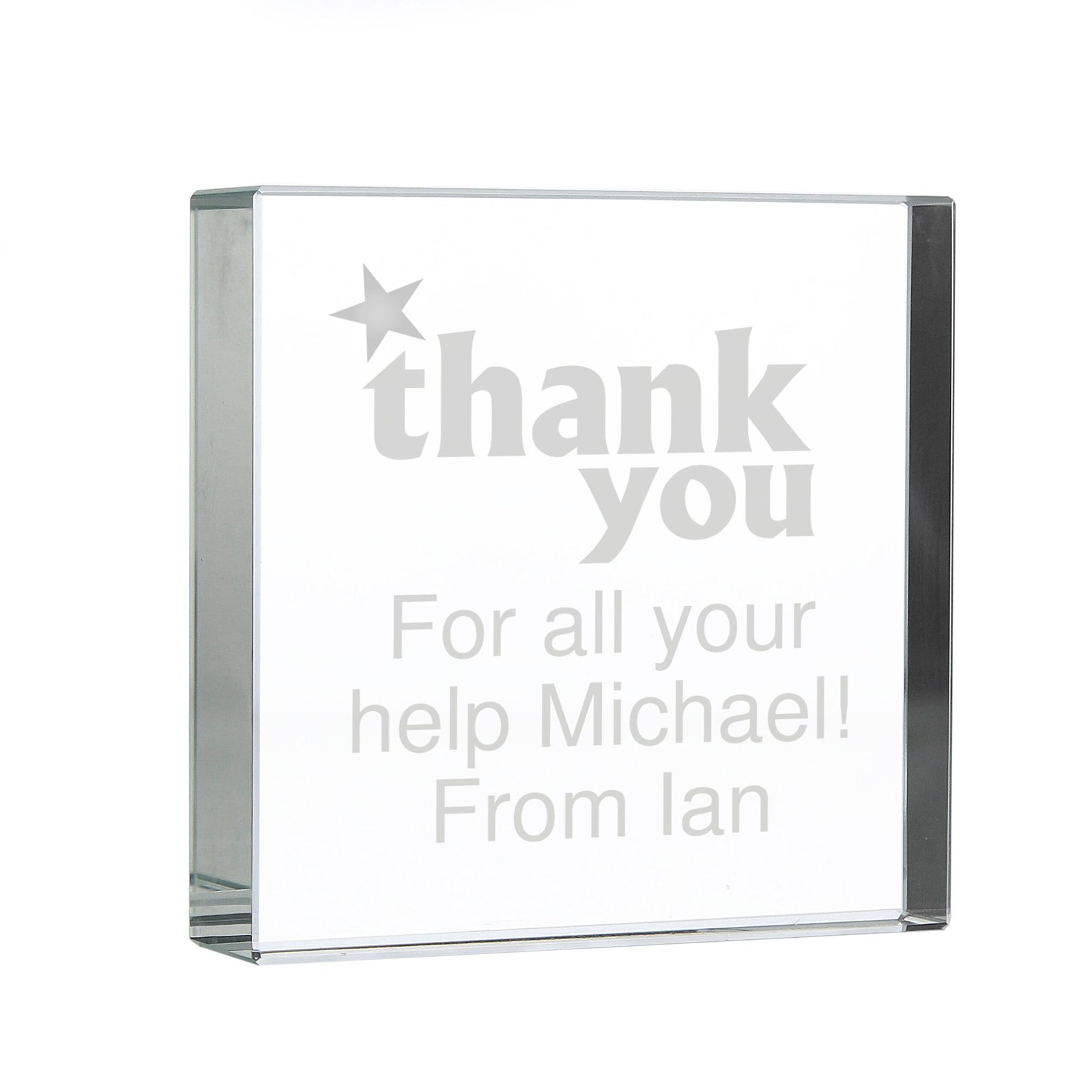 Personalised ‘Thank you’ Star Motif Crystal Glass Token