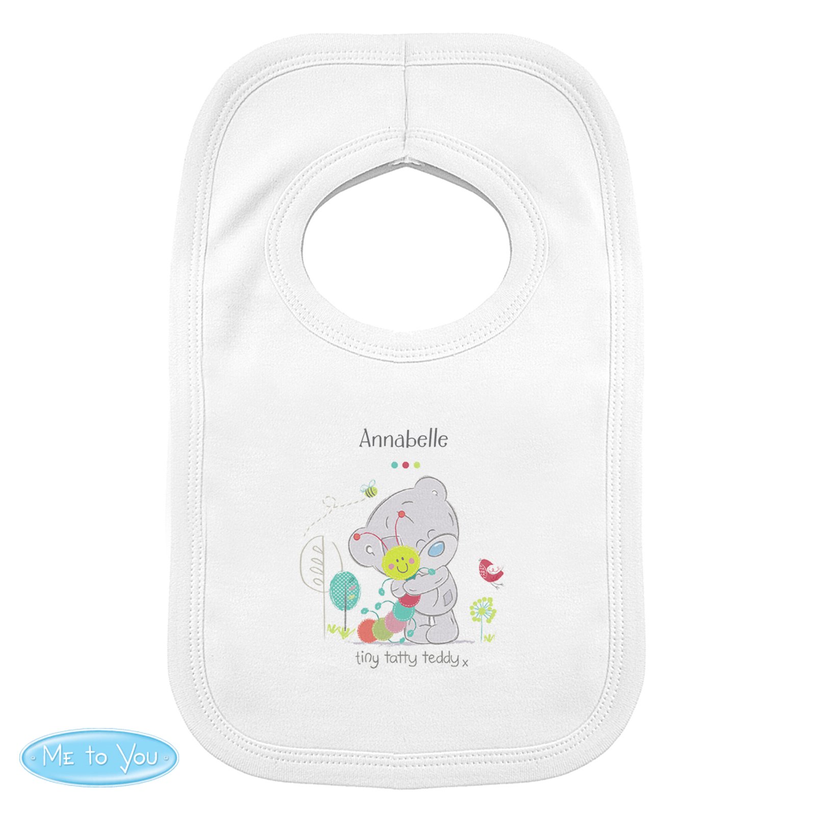 Make mealtimes extra adorable with this Personalised Tiny Tatty Teddy ‘Cuddle Bug’ Baby Bib. Featuring the sweet and snuggly Tiny Tatty Teddy character, this soft cotton bib can be customised with a name, making it a thoughtful and practical gift for new parents and their precious bundle of joy.