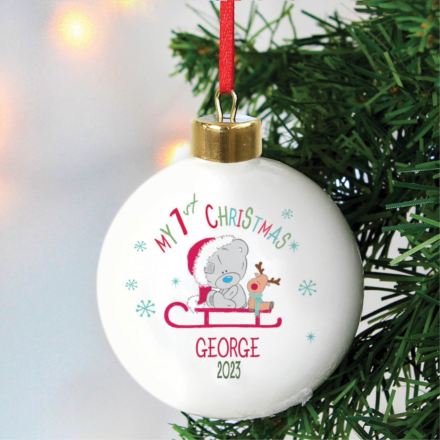 Personalised Tiny Tatty Teddy Sleigh ‘My 1st Christmas’ Ceramic Bauble