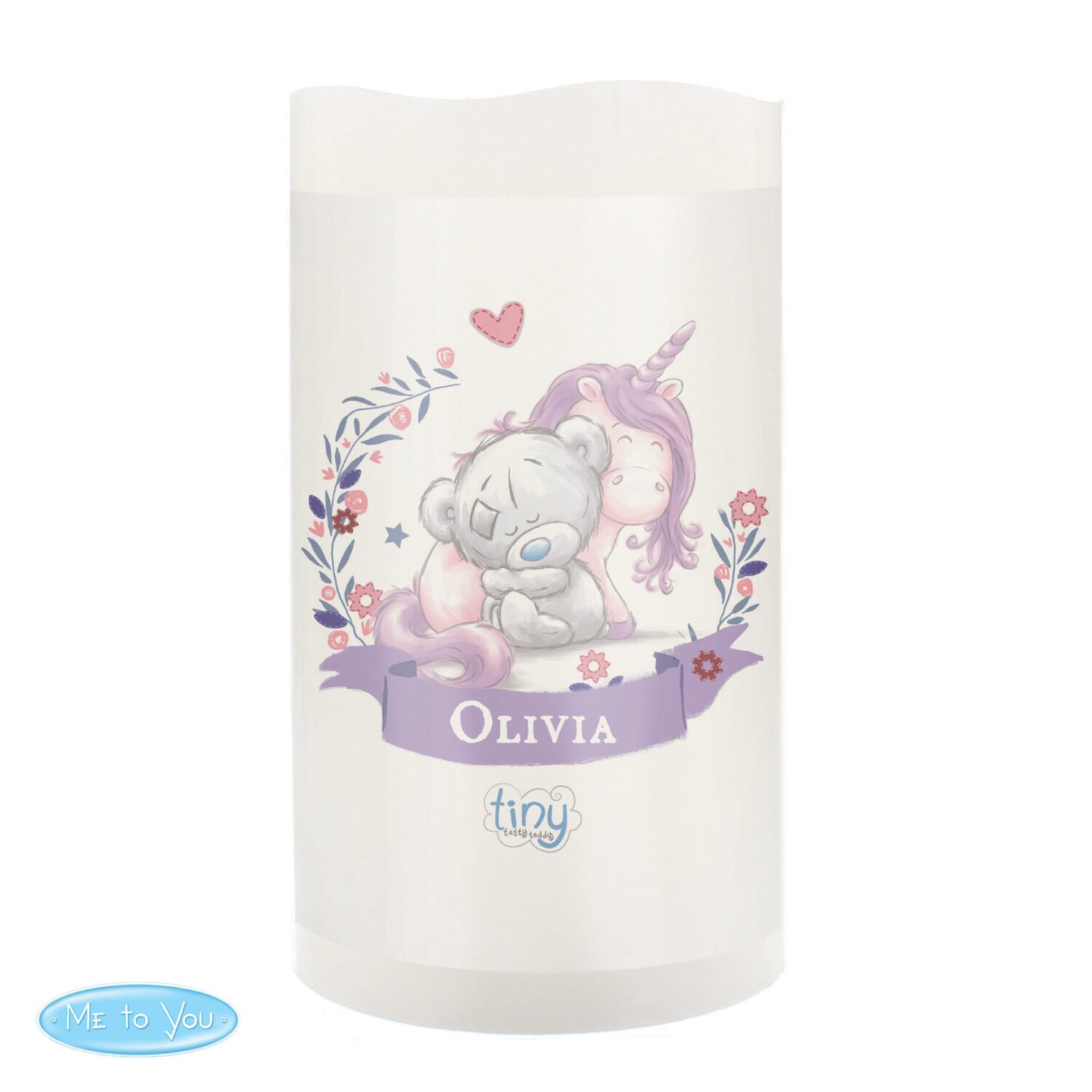 Personalised Tiny Tatty Teddy Unicorn Design LED Night Light Pillar Candle