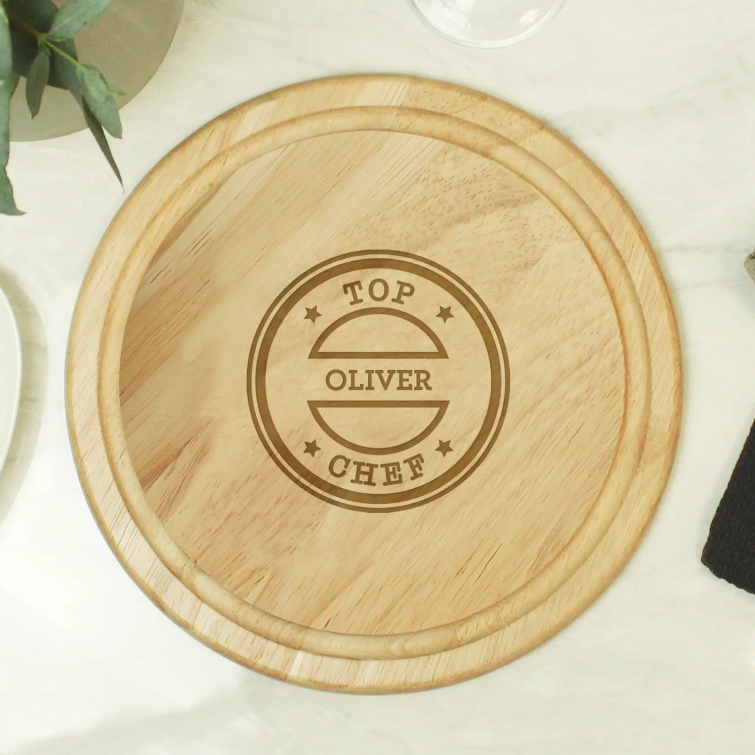 Personalised ‘Top Chef’ Round Wooden Chopping Board