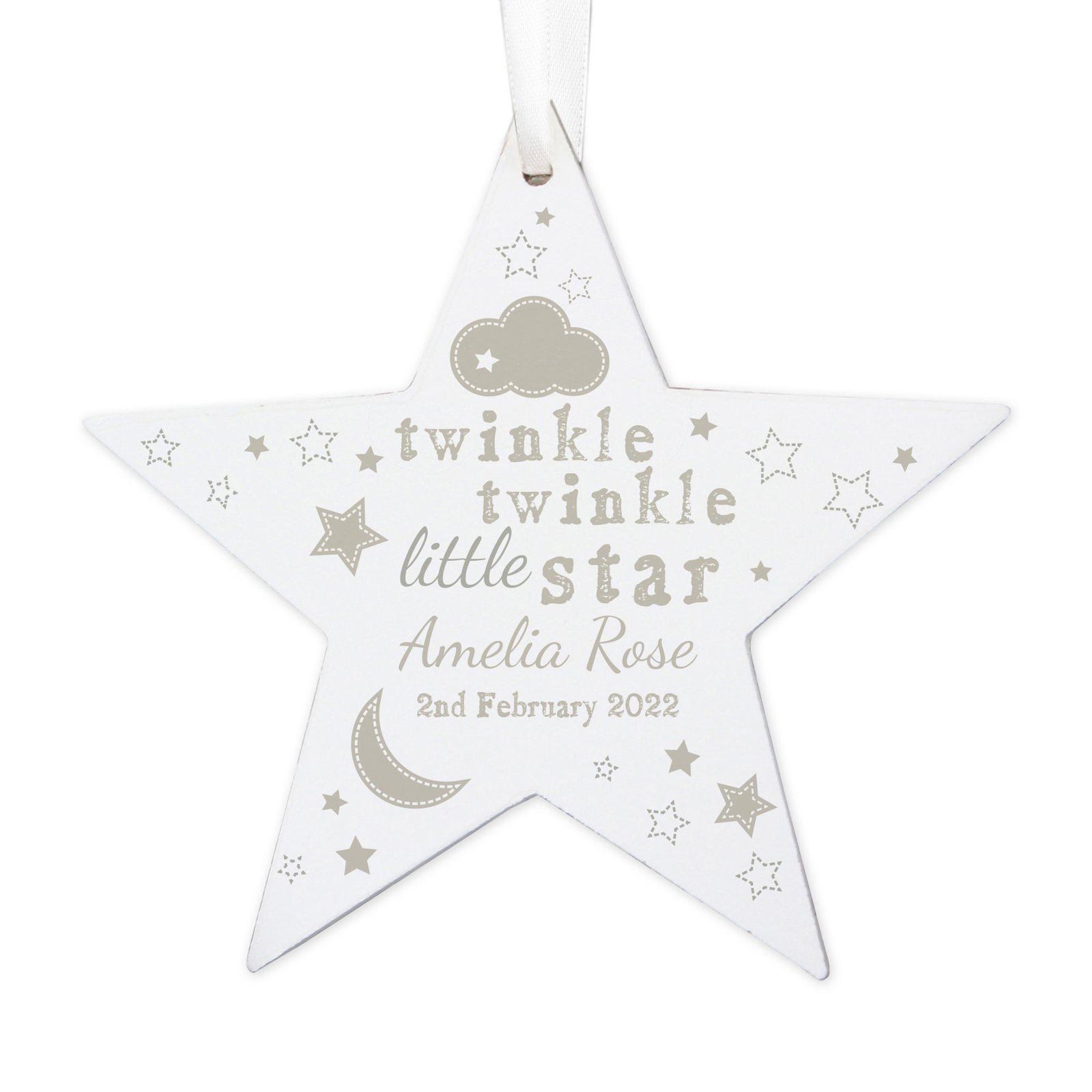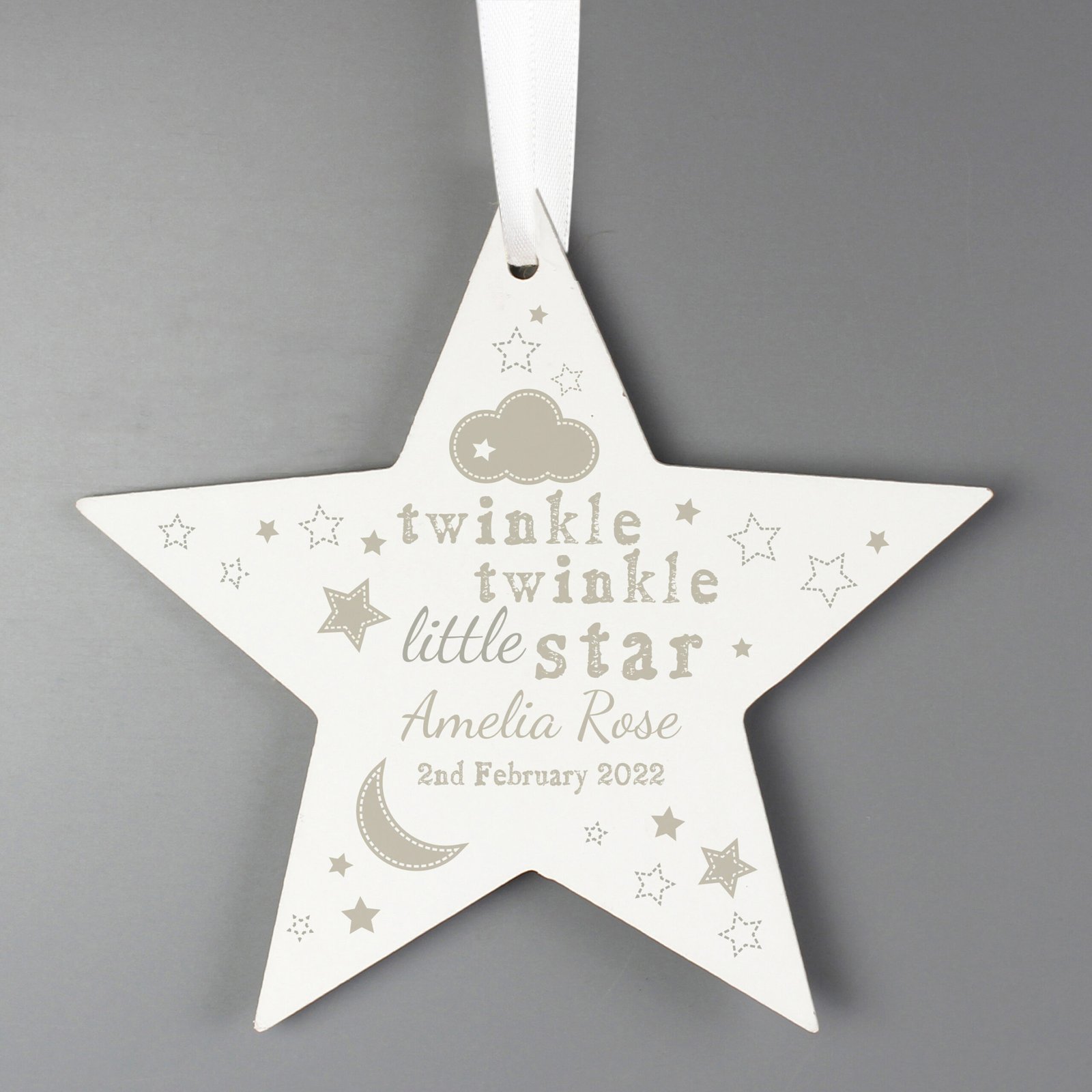 Personalised ‘Twinkle Twinkle Little Star’ Hanging Wooden Star Decoration