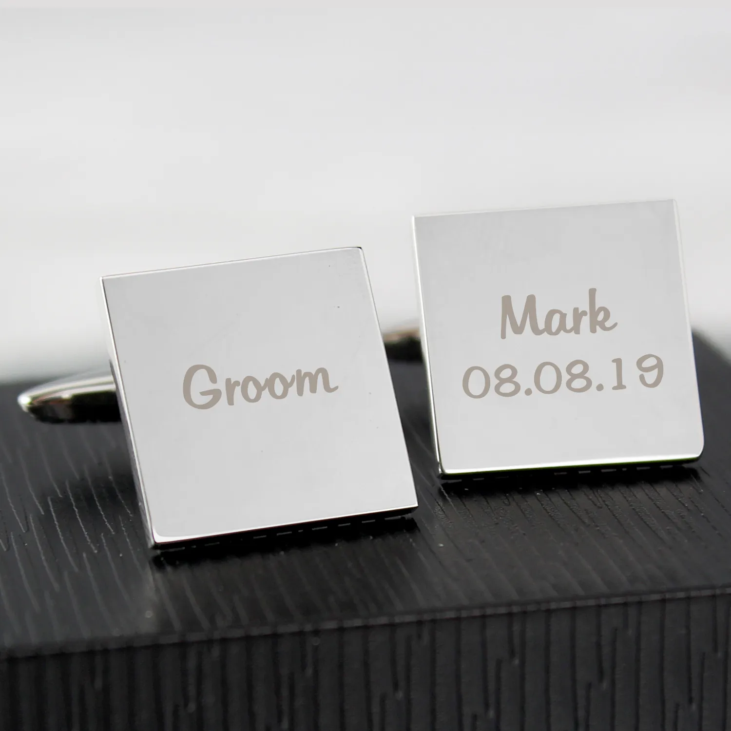Personalised ‘Groomsman’ Wedding Square Cufflinks & Chrome Plated Gift Box Set