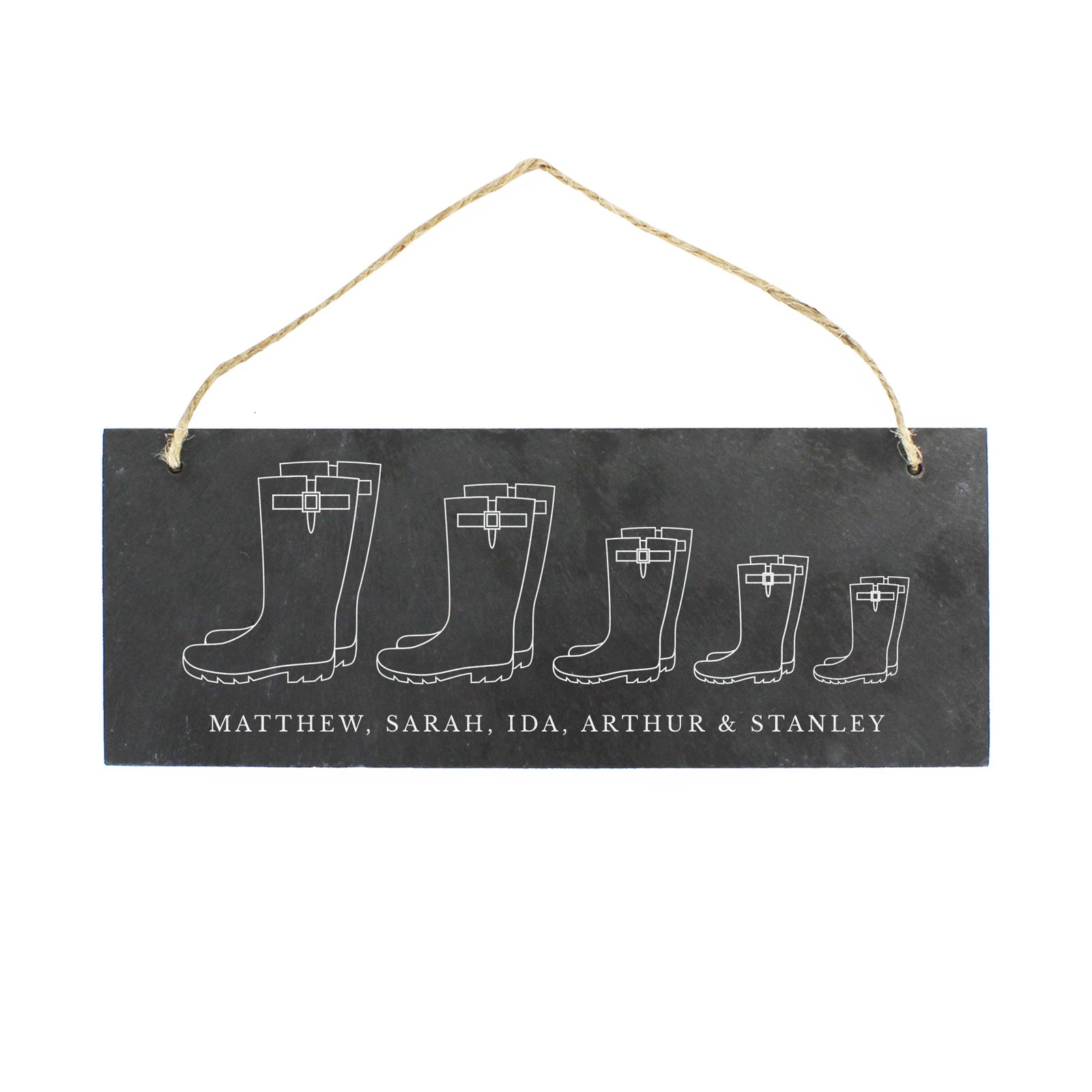 Personalised Welly Boot Design Family of Five Hanging Slate Plaque