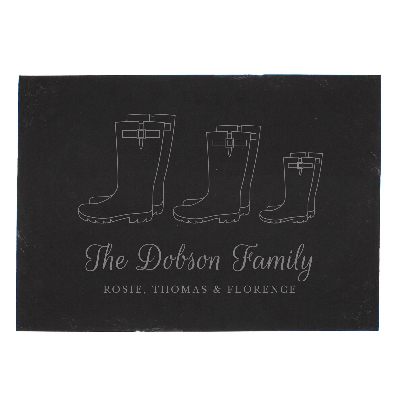 Personalised Welly Boot Design Family of Three Slate Placemat