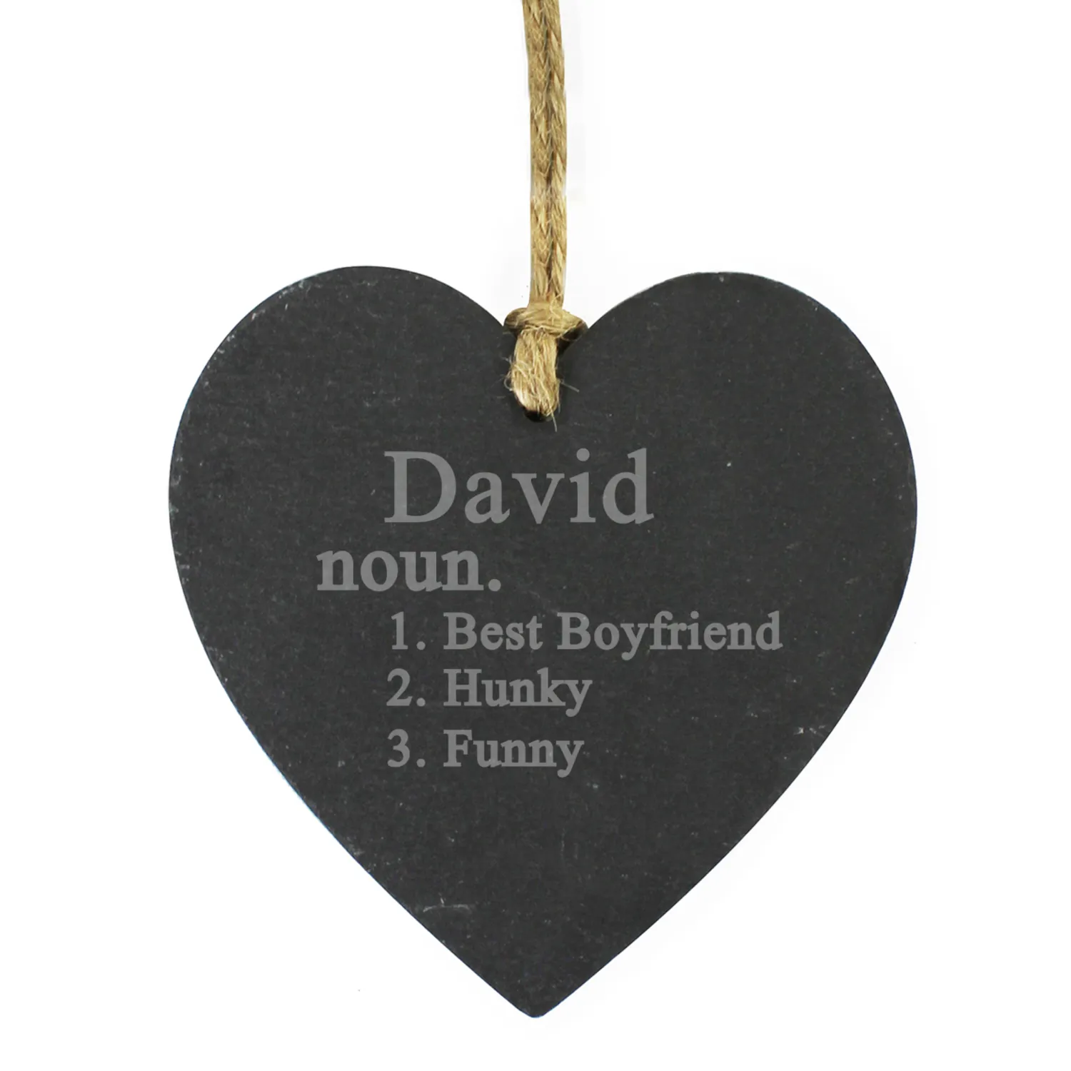 Personalised Word Definition Hanging Slate Heart Shaped Decoration