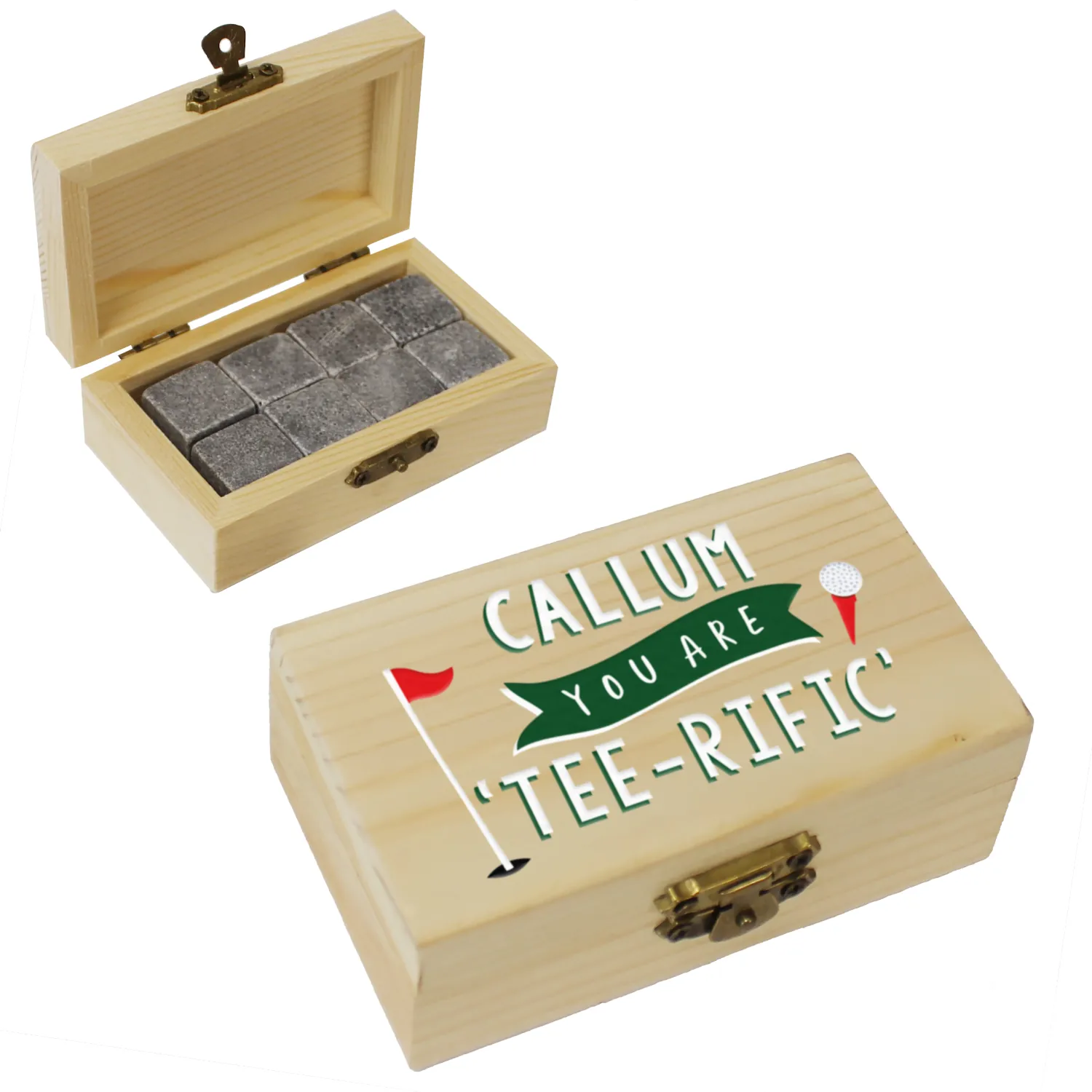 Personalised ‘You Are Tee-Rific’ Golf Themed Whisky Cooling Stones + Storage Box