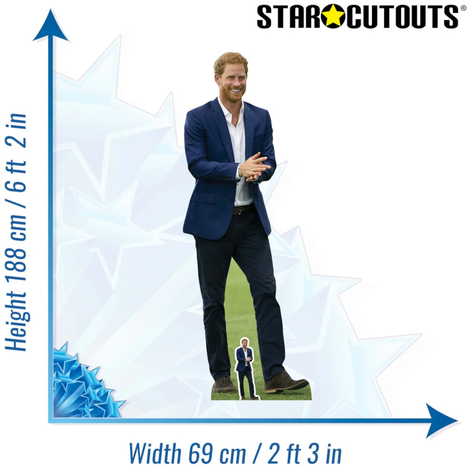 Prince Harry (Blue Jacket) ‘Duke of Sussex’ (British Royal Family) Lifesize + Mini Cardboard Cutout / Standee