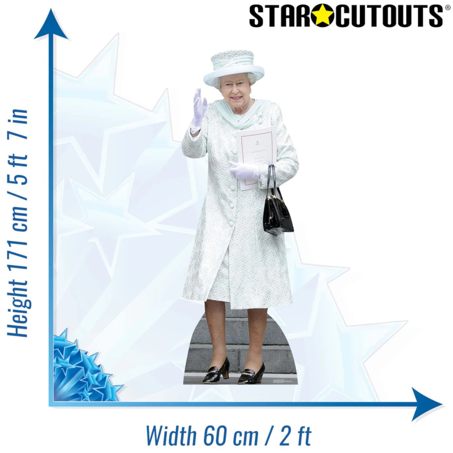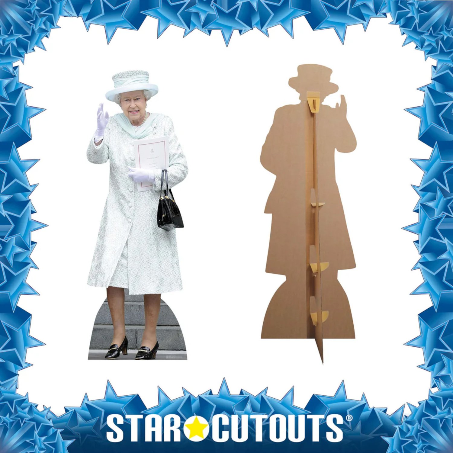 - Lifesize cardboard cutout (171 x 60cm) of Queen Elizabeth II in a waving pose