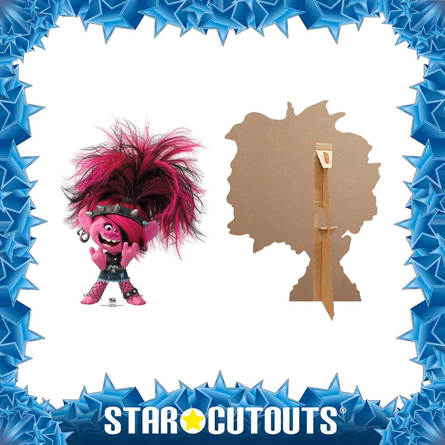 Rock the Trolls World Tour look with this officially licensed small cardboard cutout of Queen Poppy in her bold Punk Style! As the current Queen of the Pop Trolls and youngest daughter of King Peppy, Poppy shines as the heart and fearless leader of Troll Village.