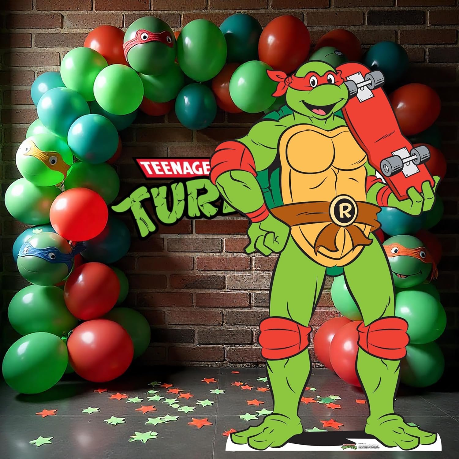 Cowabunga! Bring serious attitude and Turtle power to your space with this Raphael (Teenage Mutant Ninja Turtles) Official Lifesize + Mini Cardboard Cutout / Standee. Featuring the toughest Turtle from the iconic Teenage Mutant Ninja Turtles, this striking display shows Raph in a bold pose with his red skateboard, perfectly capturing his fearless and rebellious personality.