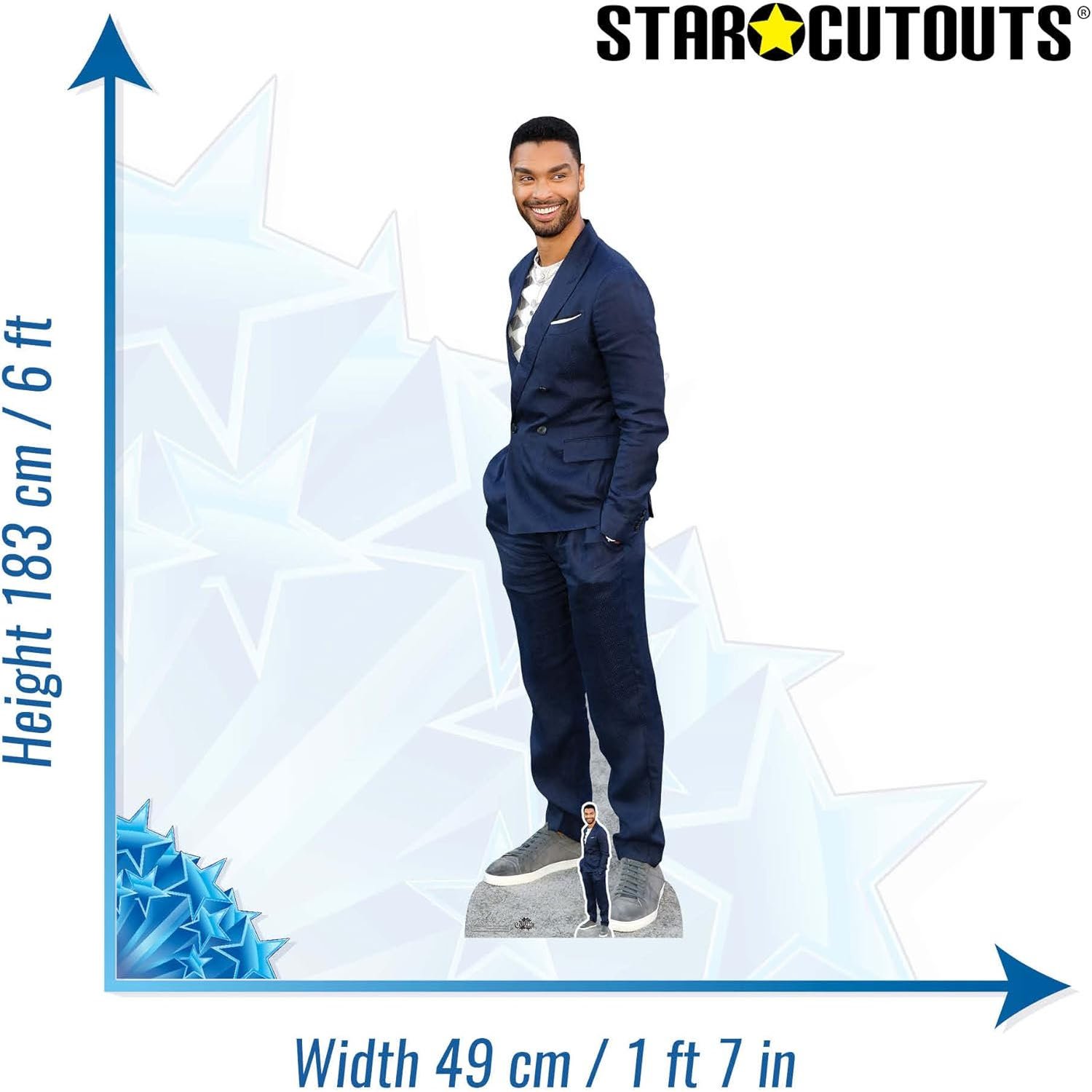 Bring the charm and star power of Regé-Jean Page into your space with this high-quality cardboard cutout set. Featuring the British actor in his blue suit known for his breakout role in Netflix’s Bridgerton (2020), this set includes both a lifesize standee and a mini tabletop cutout, perfect for fans, themed décor, events, and collector displays.