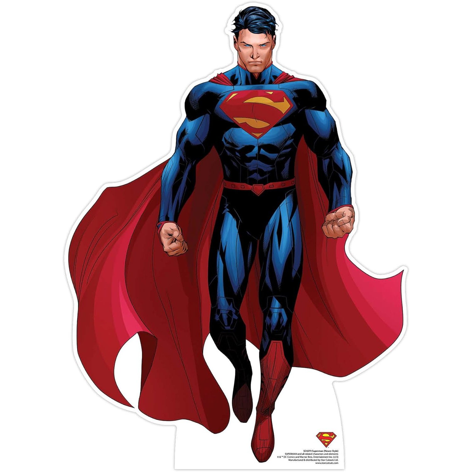 - Dynamic Cape Design: Features Superman in a classic superhero pose with his iconic red cape flowing, emphasizing strength and heroism.