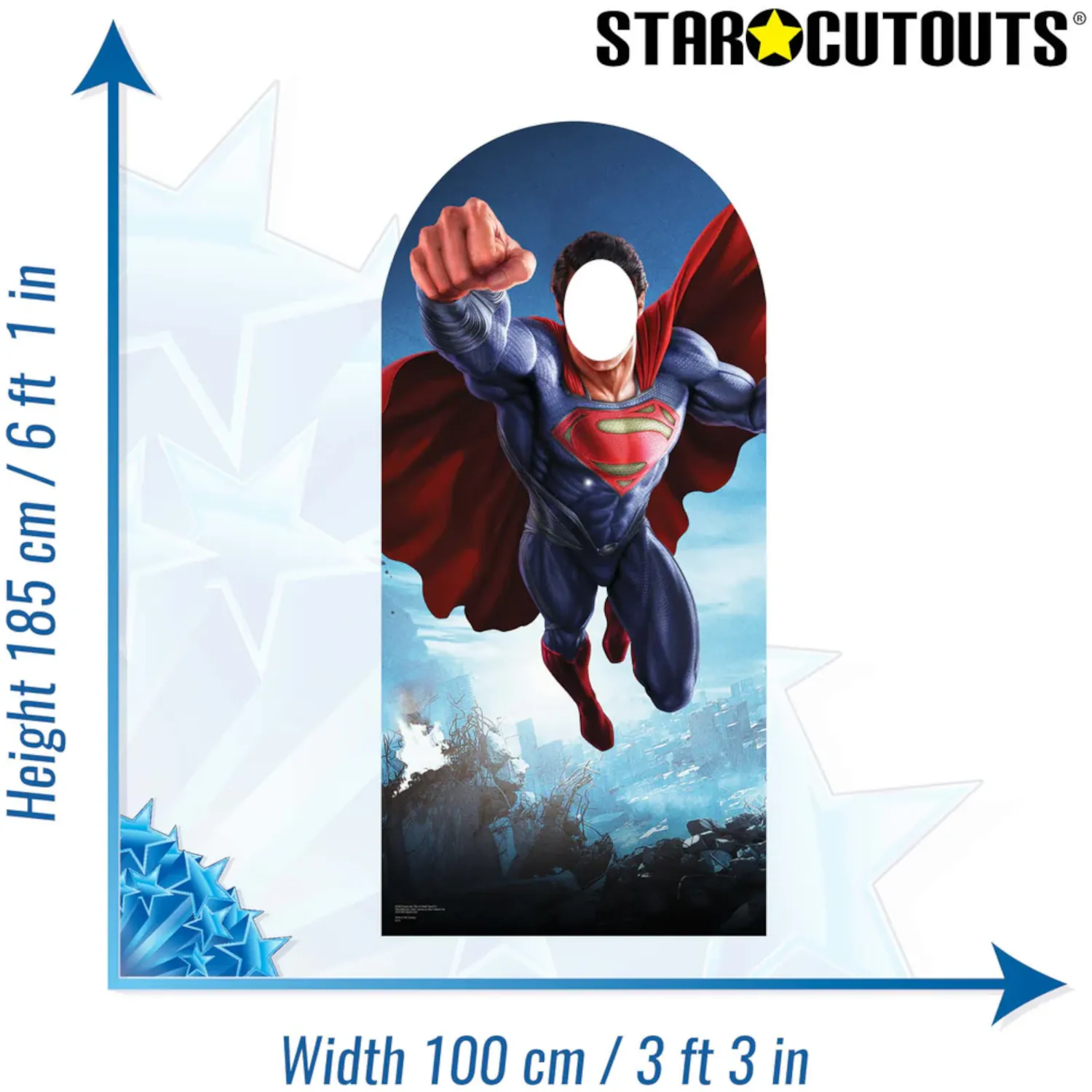 • Lifesize Stand-In Design: Full-size cardboard cutout (185 x 100cm) with a face hole so you can pose as Superman