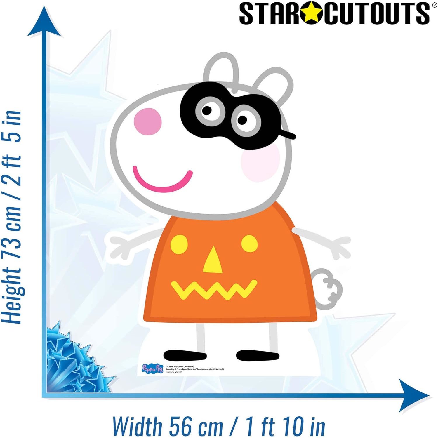 Add spooky-season fun and friendship to your display with this officially licensed small cardboard cutout of Suzy Sheep from Peppa Pig! Peppa’s best friend is dressed for Halloween and ready to celebrate with confidence, curiosity, and plenty of imagination — perfect for young fans who love dressing up and festive fun.