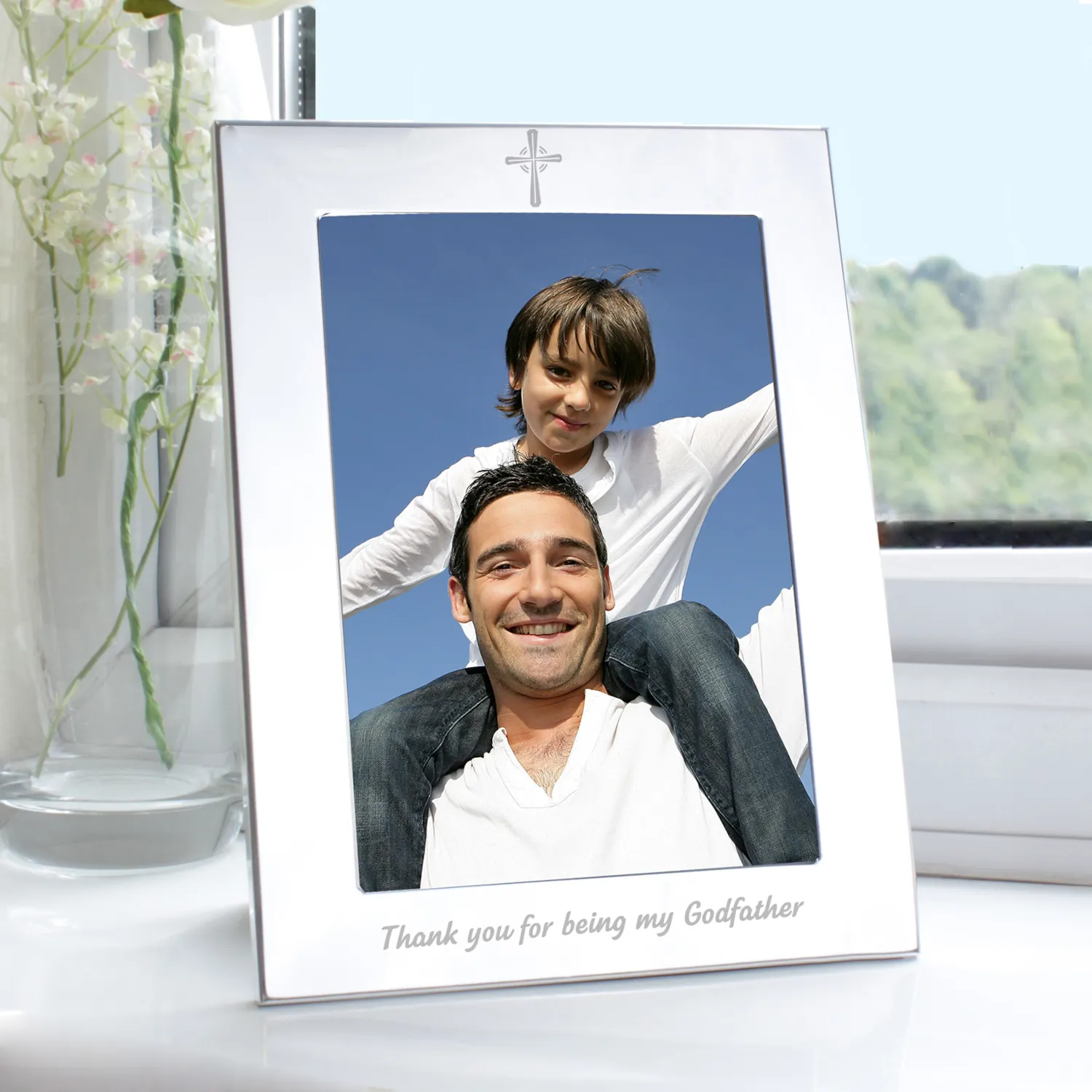 ‘Thank You For Being My Godfather’ Cross Motif 5×7 Portrait Silver Aluminium Photo Frame