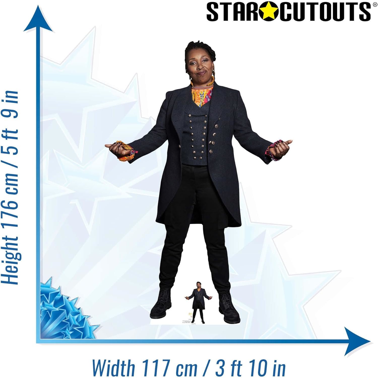 Celebrate one of the most groundbreaking revelations in Doctor Who history with this officially licensed cardboard cutout of The Fugitive Doctor, portrayed by Jo Martin. First appearing in Series 12, this mysterious incarnation of the Doctor stunned fans with her strength, authority, and hidden past, expanding the mythology of the Time Lord in thrilling new ways.