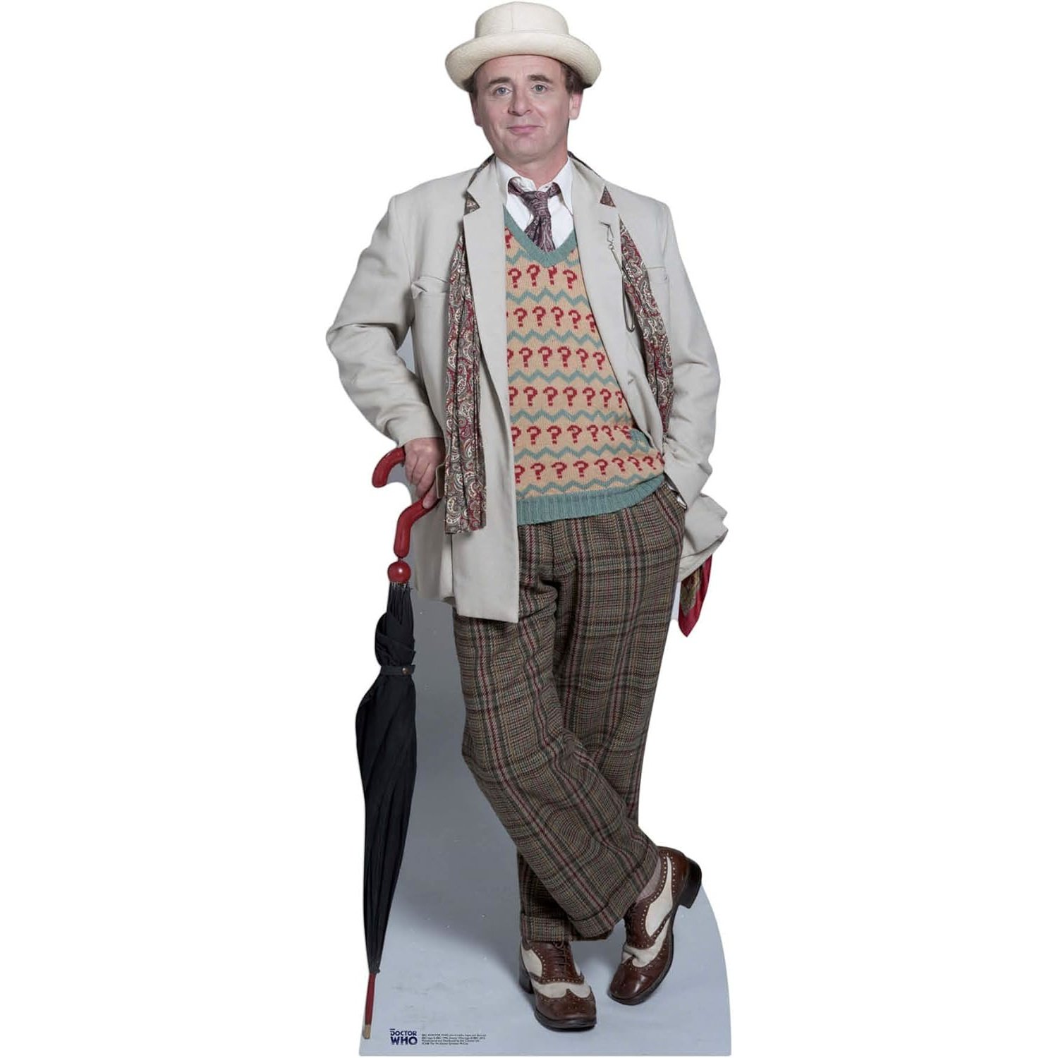 Bring home the master strategist of Doctor Who with this officially licensed lifesize cardboard cutout of the Seventh Doctor, portrayed by Sylvester McCoy. With his trademark question-mark umbrella, whimsical exterior, and razor-sharp mind, the Seventh Doctor evolved into one of the most complex incarnations of the Time Lord — a manipulator of events who always stayed several steps ahead of his enemies.