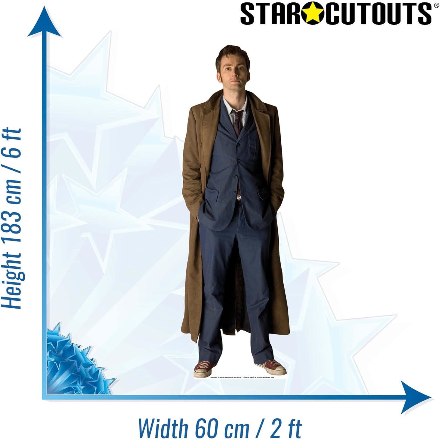 Bring the style and spirit of one of Doctor Who’s most beloved incarnations into your collection with this officially licensed lifesize cardboard cutout of The Tenth Doctor in his long coat, portrayed by David Tennant. With his flowing trench coat, pinstripe suit, and trademark Converse trainers, the Tenth Doctor became an icon of modern Doctor Who, starring in three series and nine specials packed with adventure, humour, and heart.