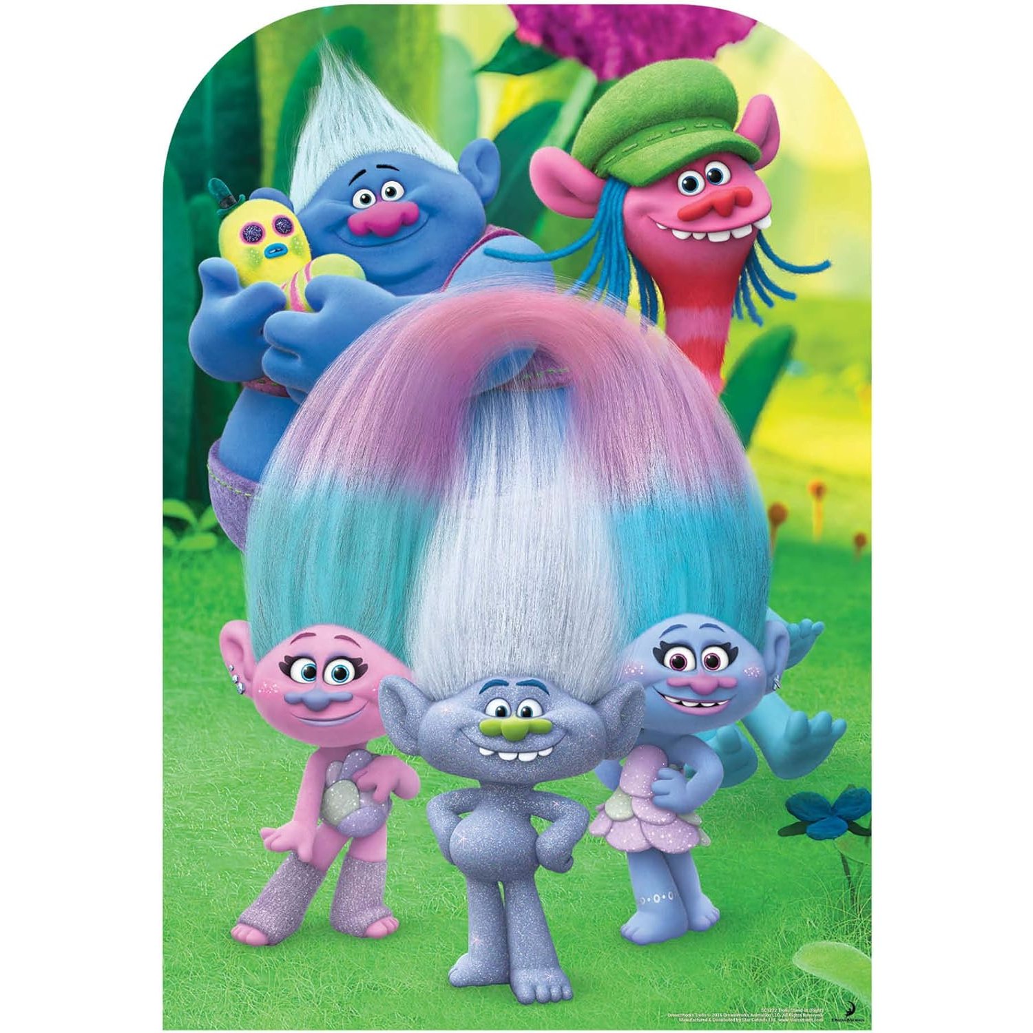 Bring the party to life with this officially licensed child-size stand-in cardboard cutout from DreamWorks’ Trolls! Inspired by the hit song “Can’t Stop the Feeling!”, this interactive standee features Guy Diamond, Cooper, Biggie, and friends, letting kids step right into the colourful world of Troll Village.
