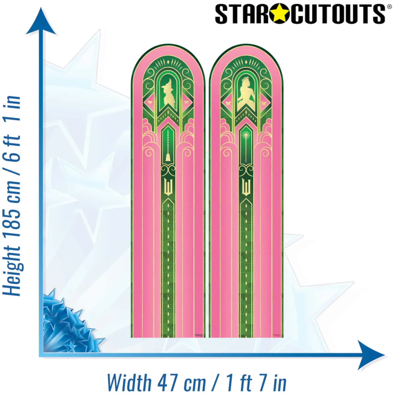 Bring the magic of Oz and the glamour of Broadway into your space with the officially licensed Two Pink & Green Pillars (Wicked) Official Double Backdrop Cardboard Cutouts / Standees! This stunning twin set features elegant, towering pillars designed to celebrate the two most iconic witches in musical theatre history – Glinda and Elphaba. Perfect for parties, events, photo backdrops, or fan displays, this duo adds instant theatrical impact wherever they’re placed.